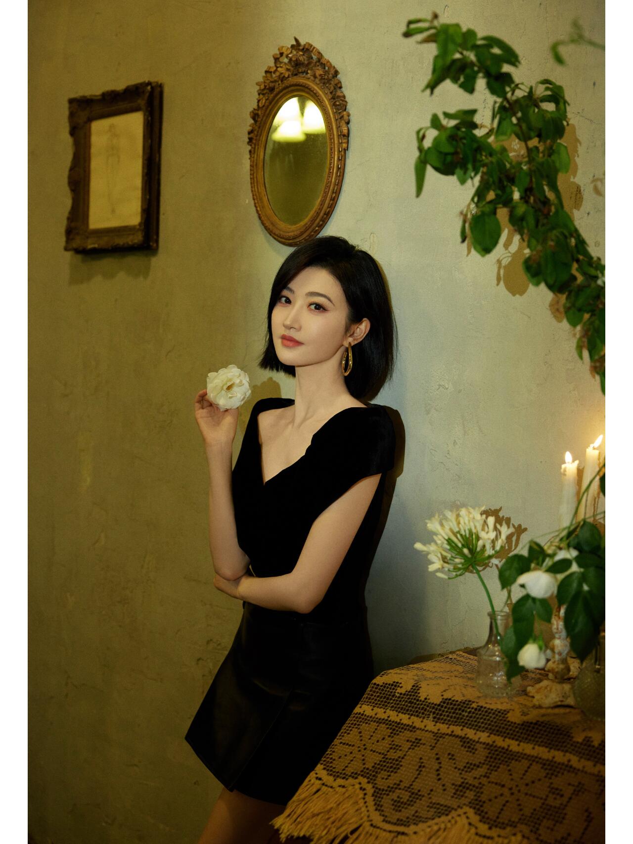 景甜这是要甜辣风转型啊,黑裙v领玩性感,齐肩短发又想骗我剪头发?不服老不行,这青春感逼人呢