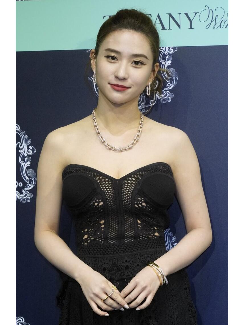 这状态很不错呢,生图也是很好看的。头发盘起来了,清爽俏皮。穿一件黑色的抹胸礼服长裙,这裙子的腰线很高,而且是拖地长裙,显得人比较修长,对个子不高的人很友好。