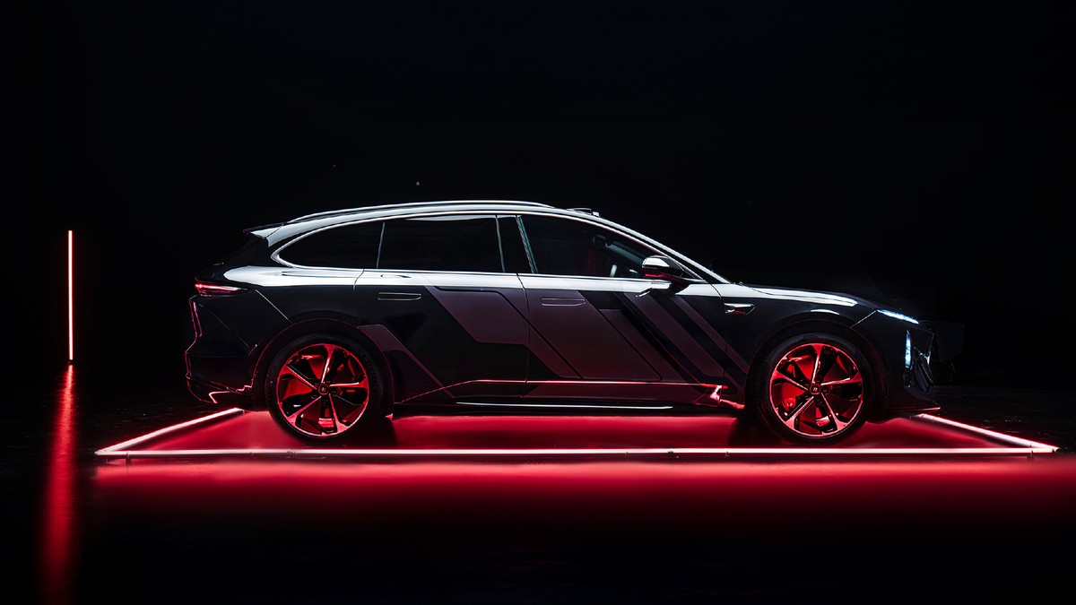车内采用“赛博座驾”风格,中控台以电驭紫Nappa & Haptex双拼内饰搭配红色氛围灯,并融入《创:战神》电影主题无限画布,营造出科幻与艺术交织的座舱氛围。配置方面,15.6英寸AMOLED中控屏、10.2英寸液晶仪表、18.8英寸W-HUD构成智能交互核心,搭载整车全域操作系统SkyOS·天枢,具备四区域语音控制、手机控车、车载KTV等功能。