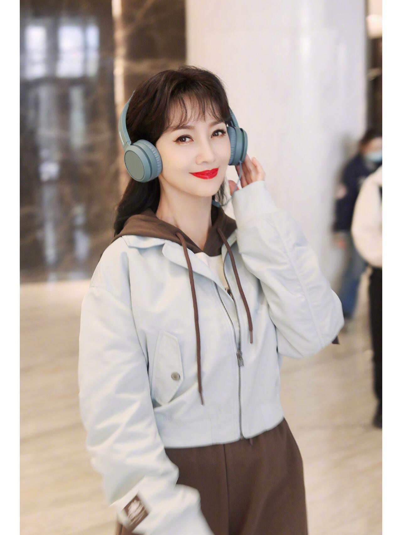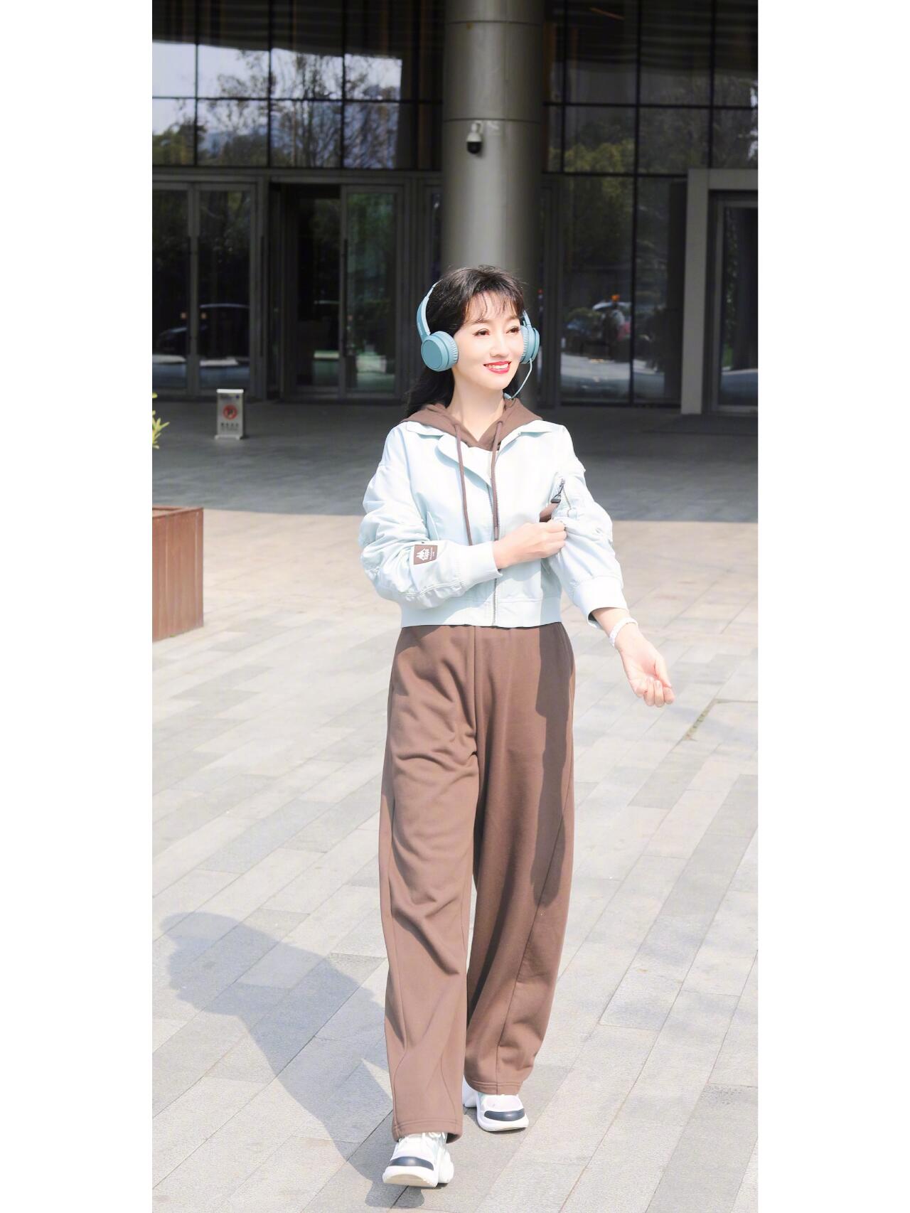 她穿了一套运动风套装,休闲舒适又得体大方.她以前穿的衣服很多人觉得是她在装嫩.但这次的运动风套装却没有这感觉,是没有年龄界限的.