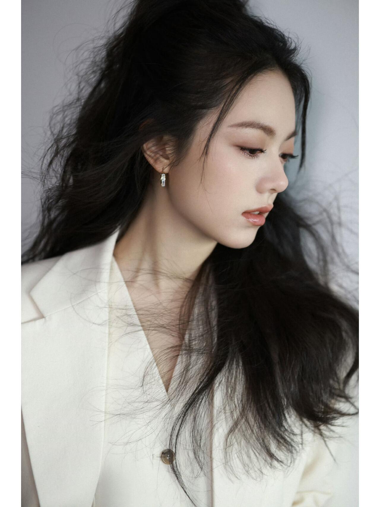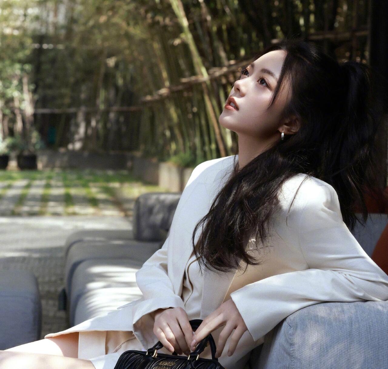 这姑娘造型真是一套比一套好看.这次扎了半高马尾,这发量很让人羡慕。俏皮浪漫有气质.