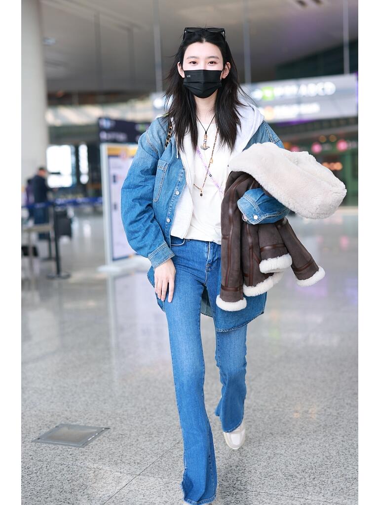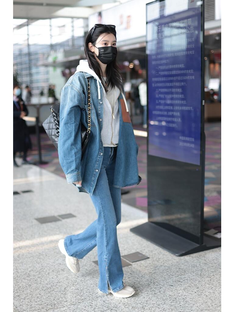 奚梦瑶这身look,简单却时髦到飞起,超模魅力不减,小白鞋都能穿出高级感!时尚icon认证!