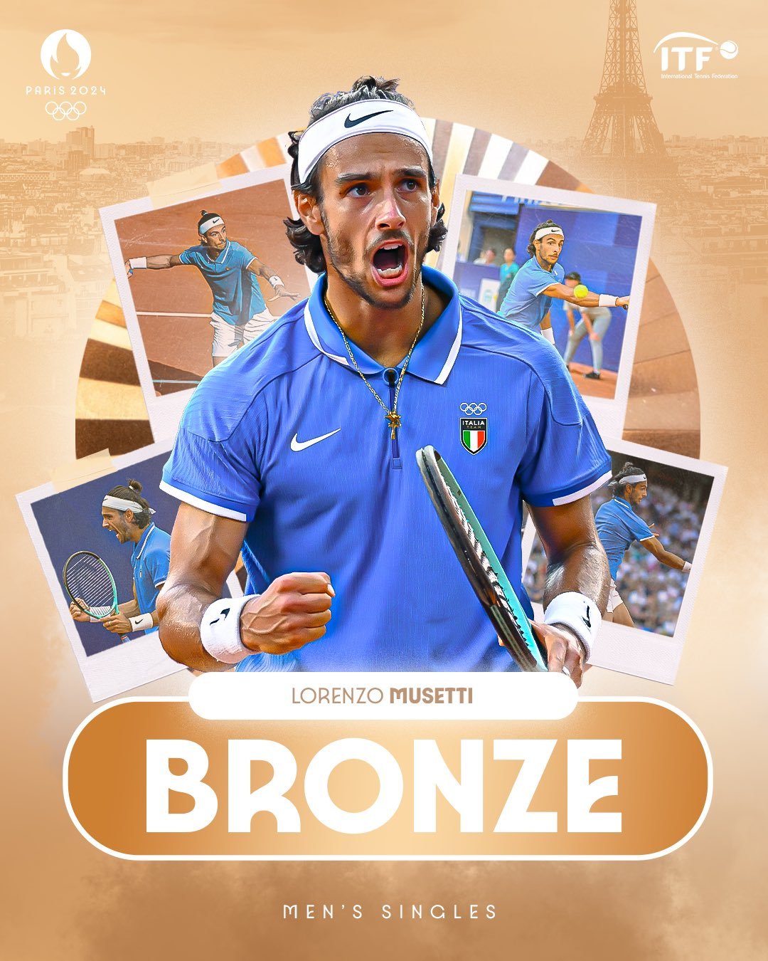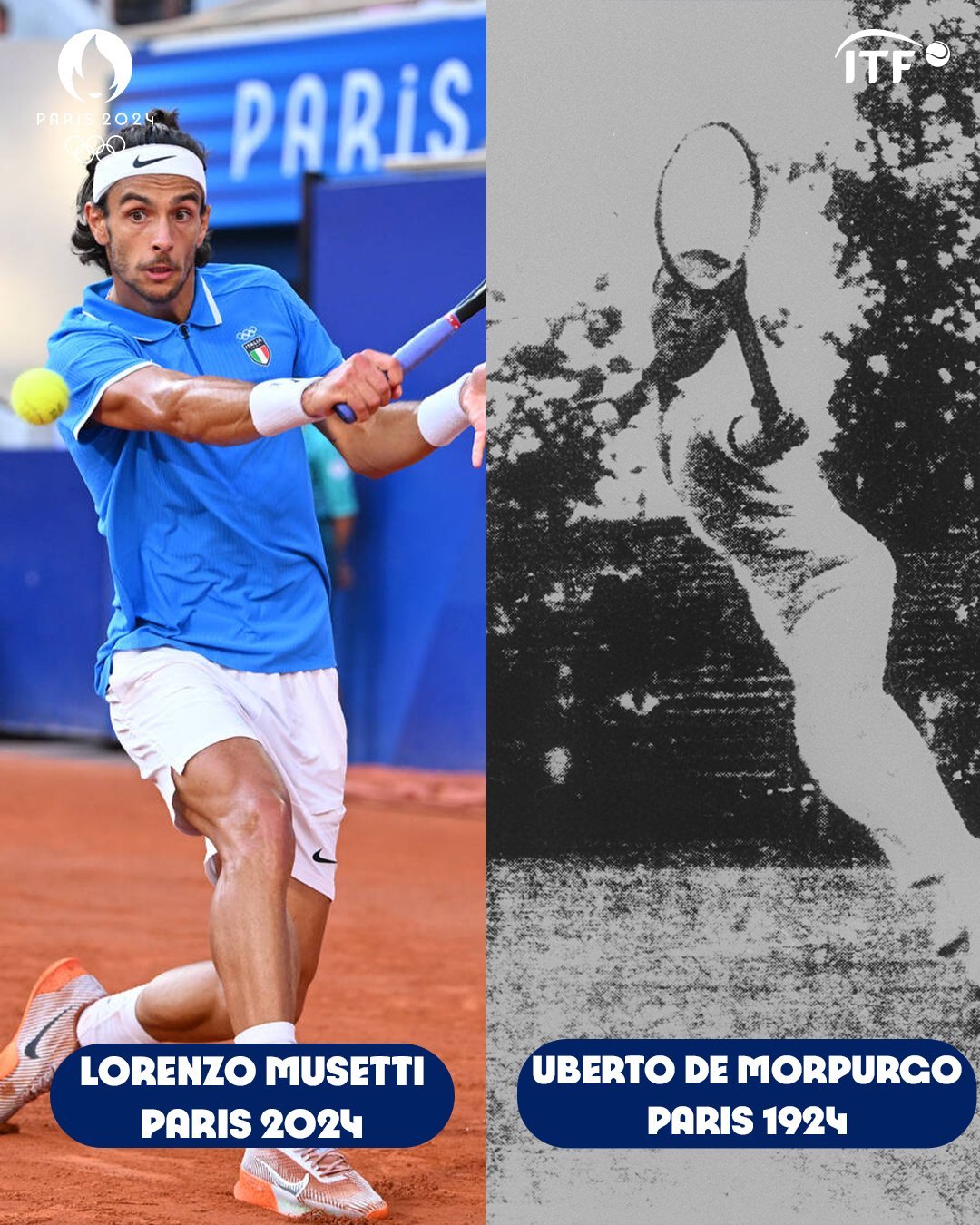 #2024年巴黎奥运会# 巴黎奥运会网球男单铜牌赛,穆塞蒂激战三盘以6-4/1-6/6-3力克阿利亚西姆,意大利代表团时隔100年之后再次迎来奥运会网球奖牌的获得者,上一枚奖牌也是来自巴黎奥运会,不过是整整一百年之前的1924年巴黎奥运会,当时意大利选手Uberto de Modpurgo同样在男单项目收获了铜牌🥉