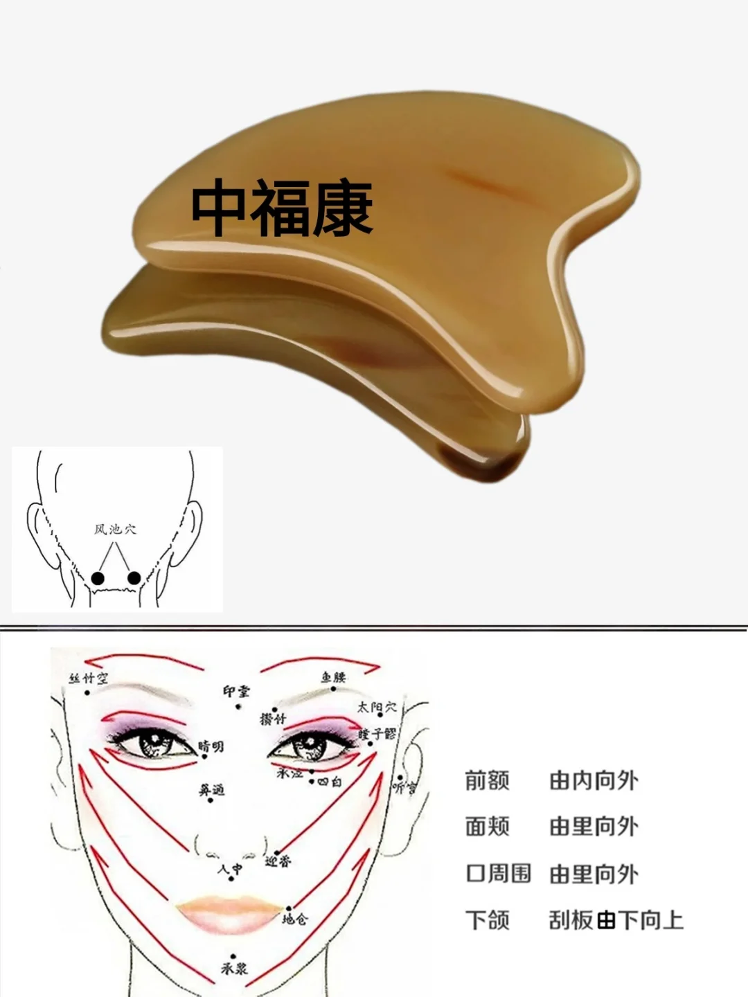 牛角刮痧板拨筋棒结构说明 ①眼周拨筋,穴位按摩 ②手臂、腿部、腹部、背部、脸部、刮痧板刮脚 ③手指、鼻部、脊椎 ④肩颈、面部、四肢 ⑤眼周、穴位 ⑥脸部拨筋,提拉,手部 - 刮痧板脸部教程 💡💡💡简易4步骤💡💡💡 1、卸除彩妆、爽肤,清洁面部 2、展油,穴位点按 3、根据图示方向操作,方向单向,不来回; 4、刮痧板安抚脸部,放松面部 - 刮痧板使用 💡💡💡基础方向💡💡💡 里->外 下->上 左->右 - 白水牛角保养 牛角本身是很好的中药材,平时不要泡水、不要热水洗涤、不用化学洗涤剂。清洗时用清水冲洗最好,洗后立刻用布擦拭干后立刻涂抹精油或者滋润的护肤品密封置放。 - 牛角刮痧板,拨筋棒,梳子 天然产品,任何两个都不会一样