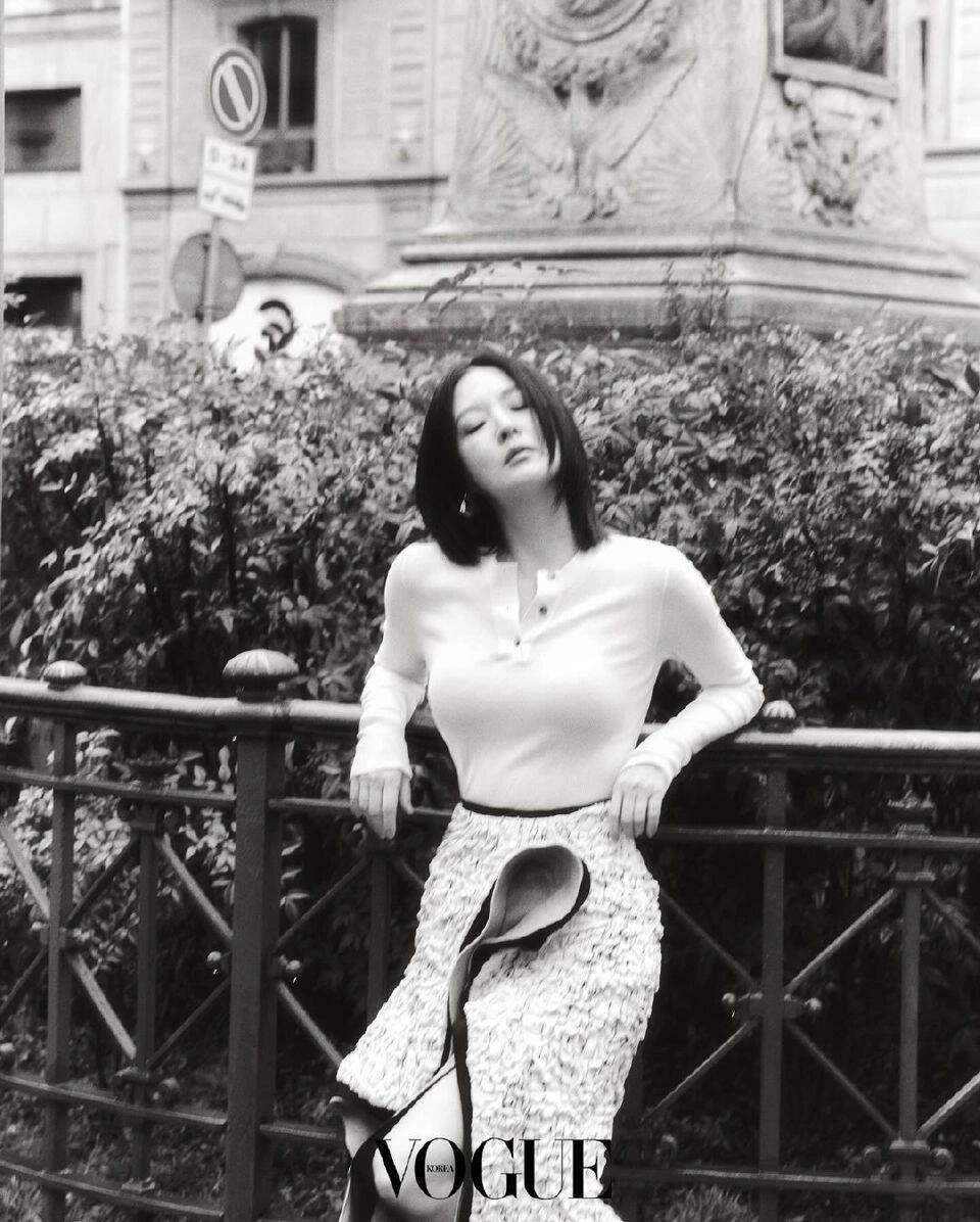 这设计绝了!荷叶边加黑滚边,复古不老套,李英爱穿出优雅新高度,真心美翻了!