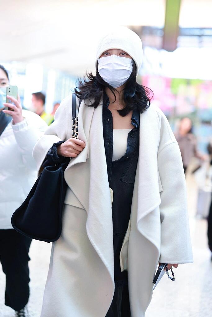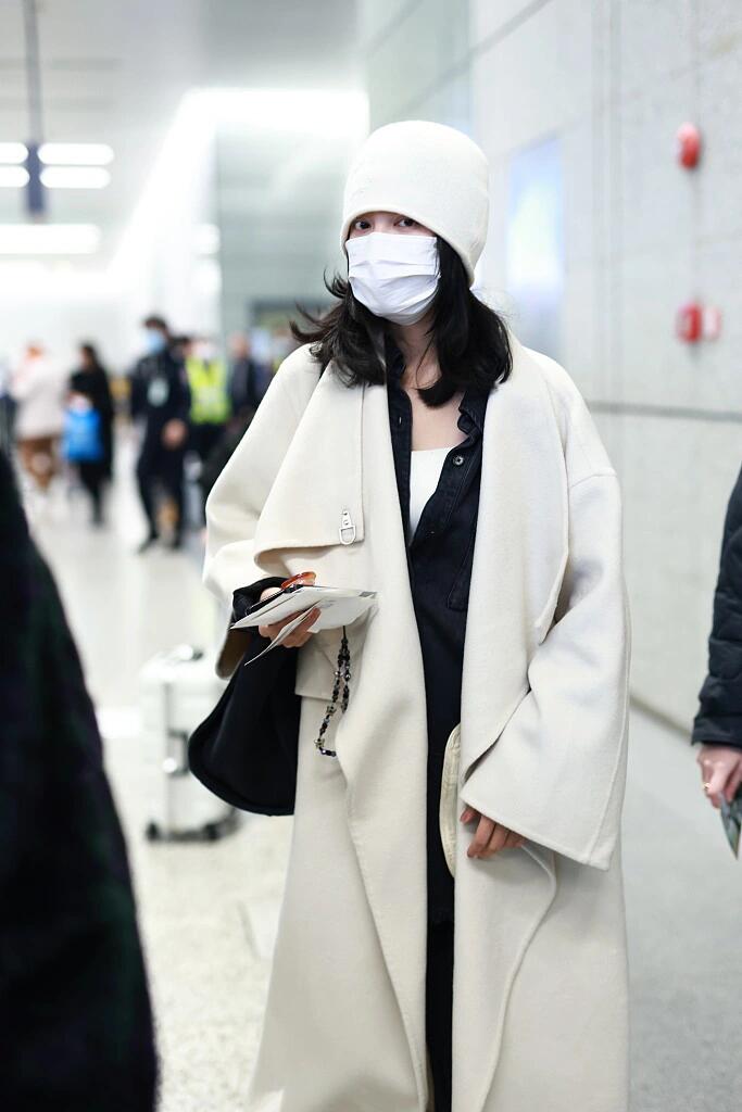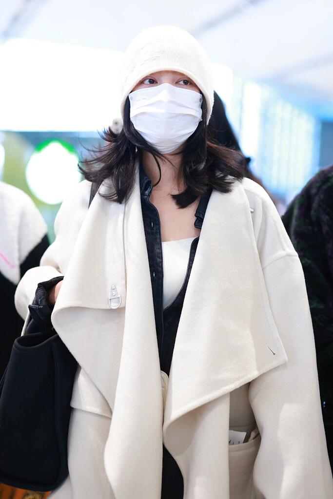 辛芷蕾这身白大衣配黑裤,简约里透着高级感,针织帽点睛,轻轻松松拿捏住时尚与气场!#穿搭灵感#