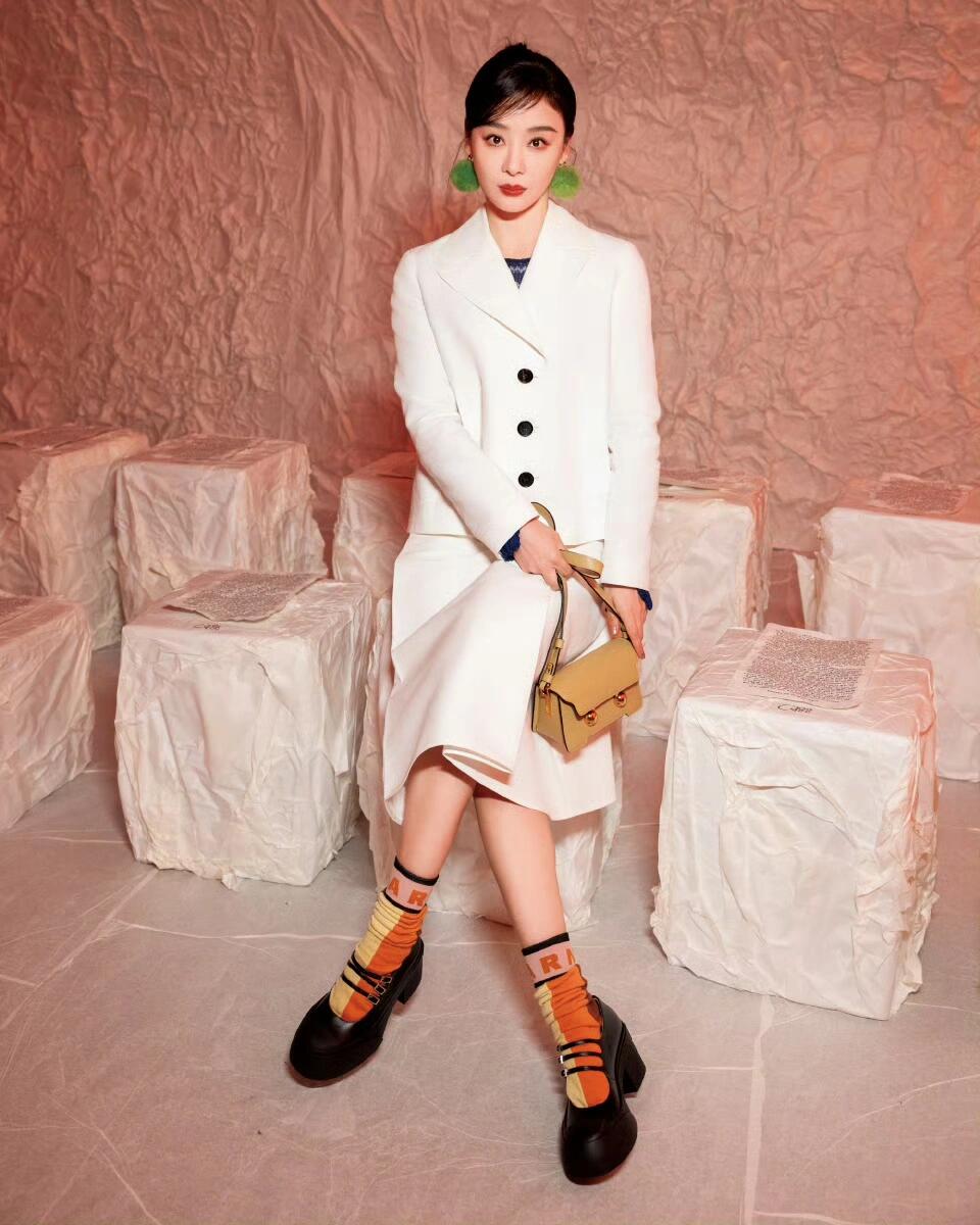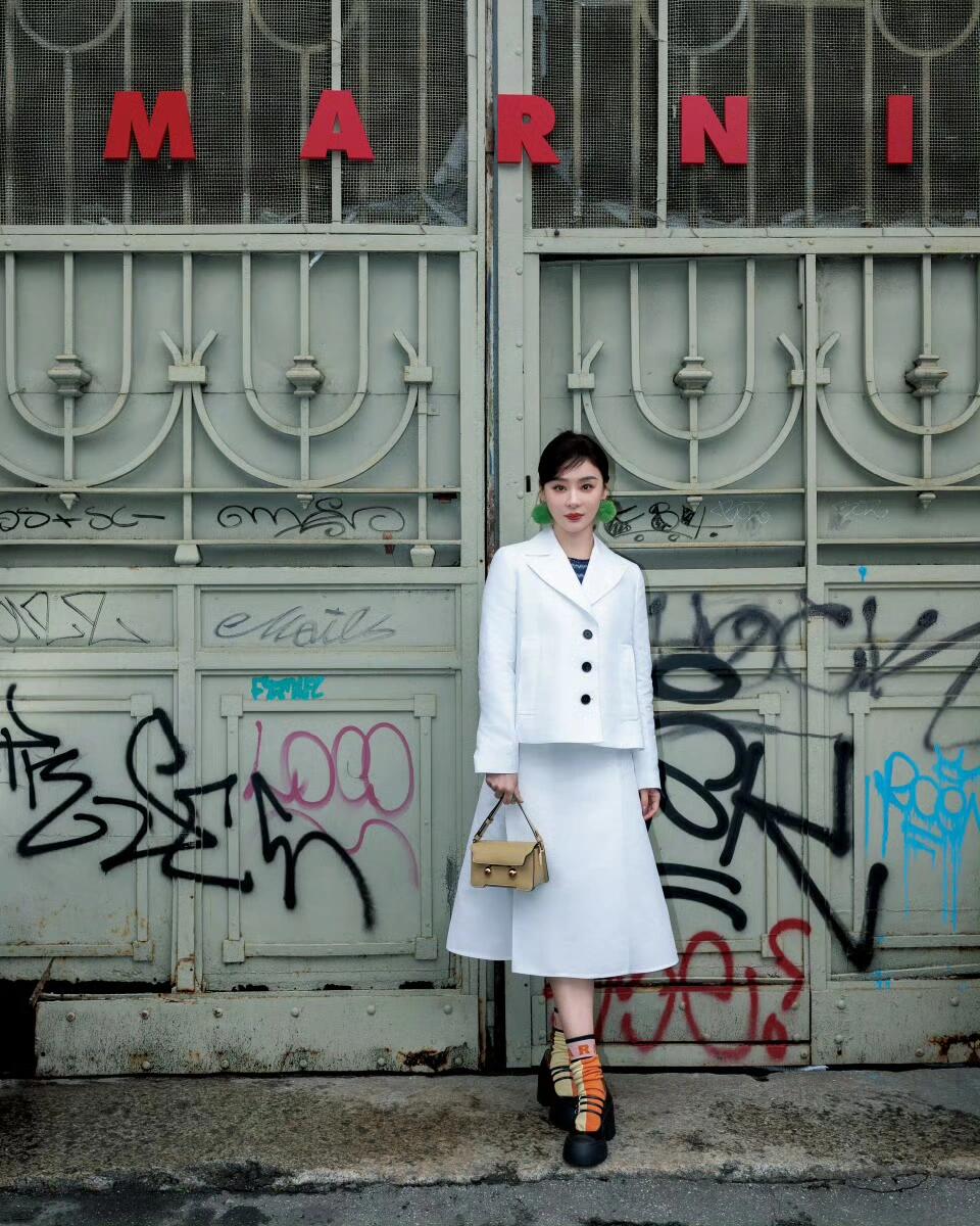 袁姗姗这身白外套配a字裙,复古范儿简直了!感觉自己穿也能秒变时尚达人~✨
