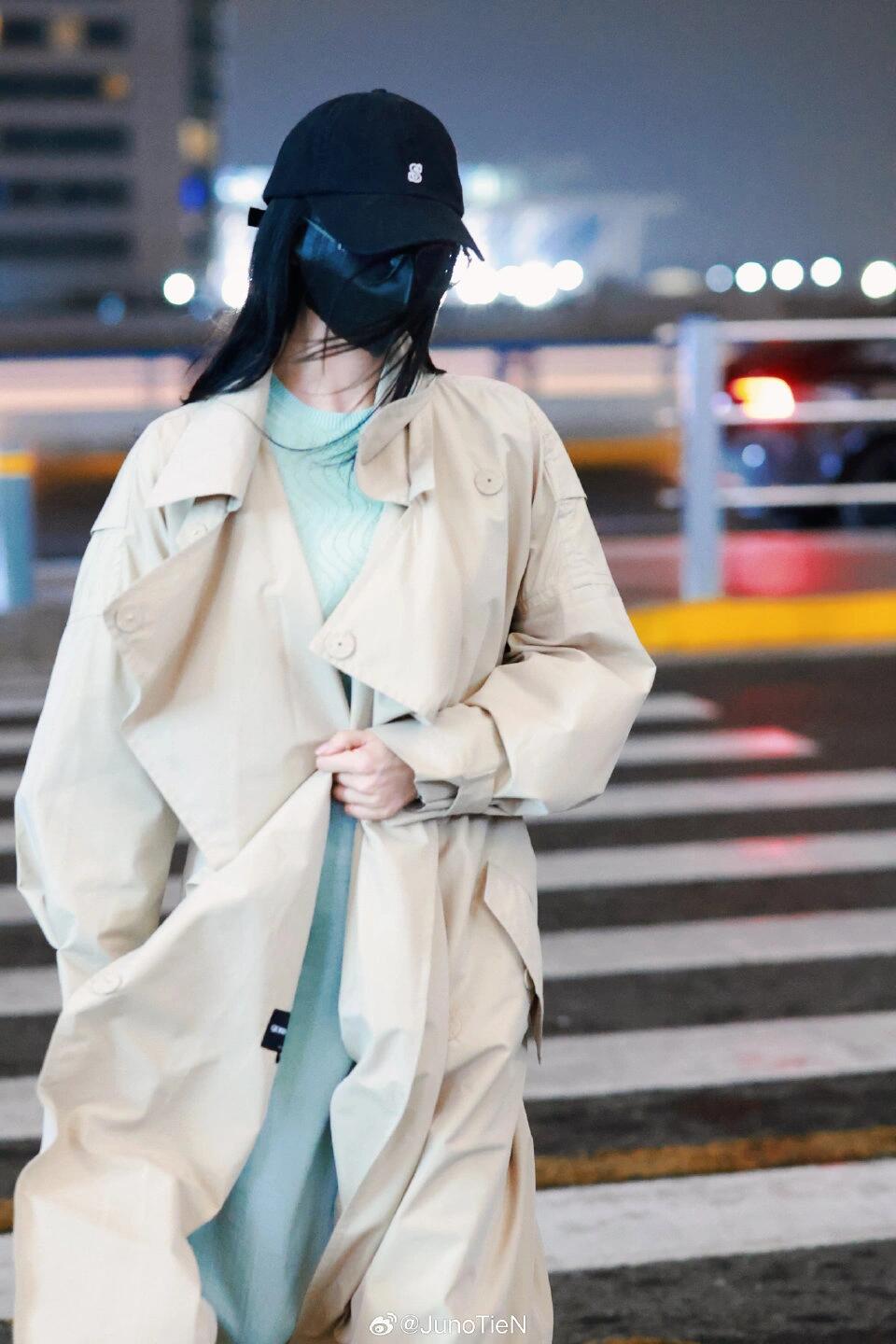 刘诗诗穿浅卡期色长风衣又飒又美