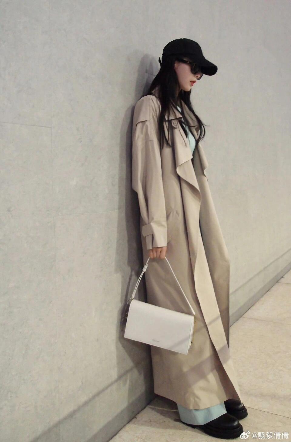 哇塞,卡其色风衣配浅蓝套装,刘诗诗这身造型简直时髦炸了!走路都带风,绝美~ #时尚icon#