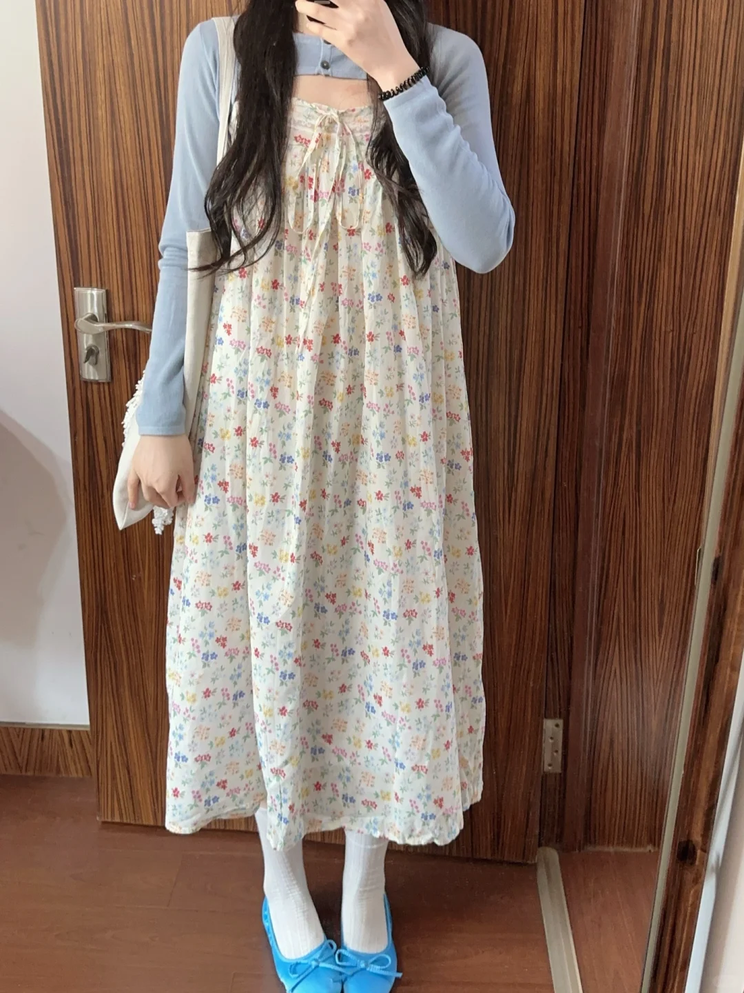 韩系穿搭分享 碎花裙 夏天穿裙子 坎肩 碎花吊带裙 温柔穿搭 坎肩叠穿