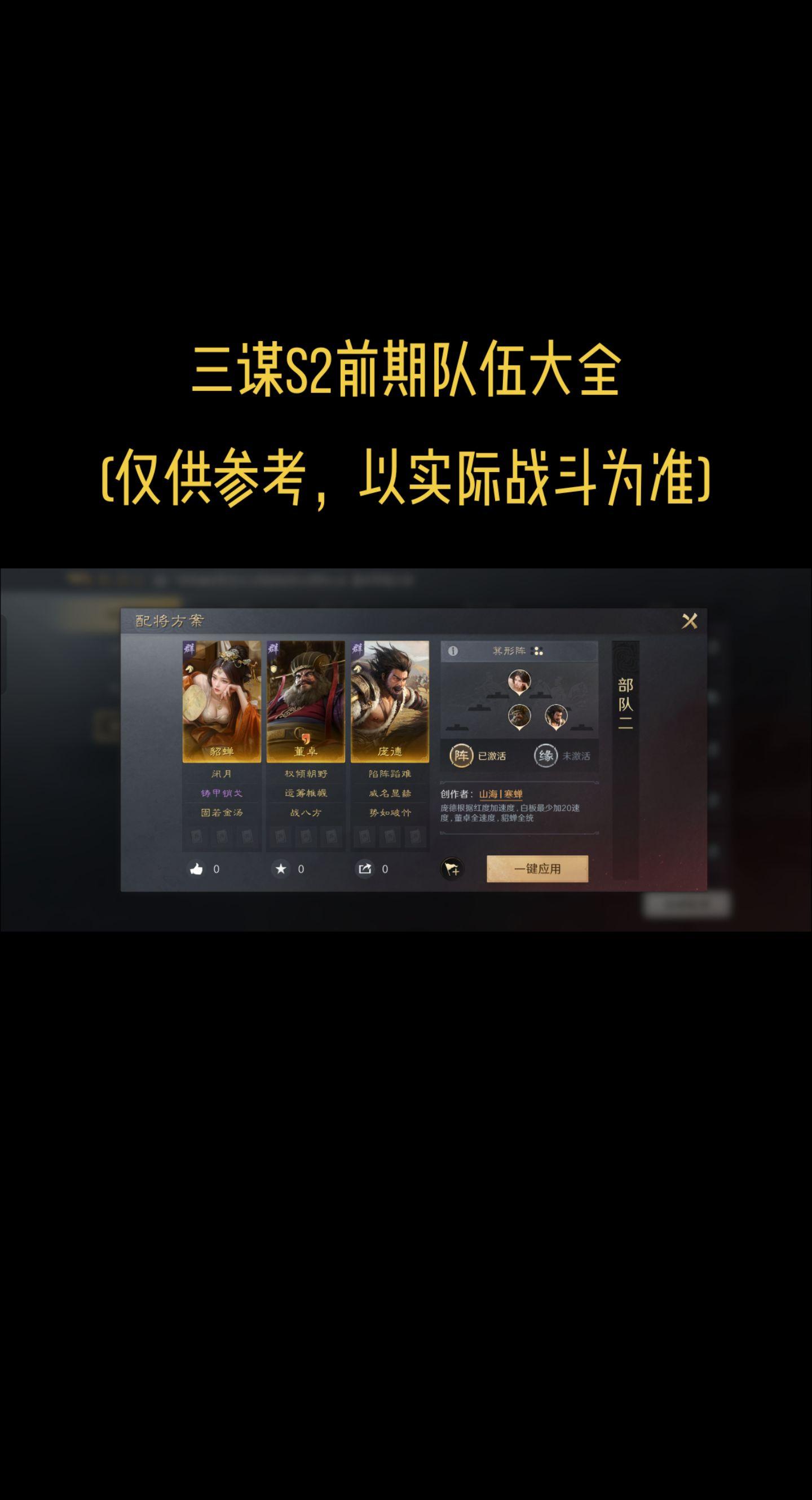 三谋S2前期队伍汇总(仅供参考,1赛季的队伍依然强势)