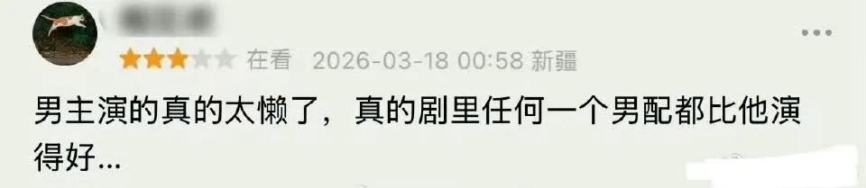不少网友直言,若不是剧情足够爽,真的撑不到最后:“好好的年代剧,被男女主的表现拖了后腿”“男主的敷衍演技,配不上这部剧的剧情质感”。
