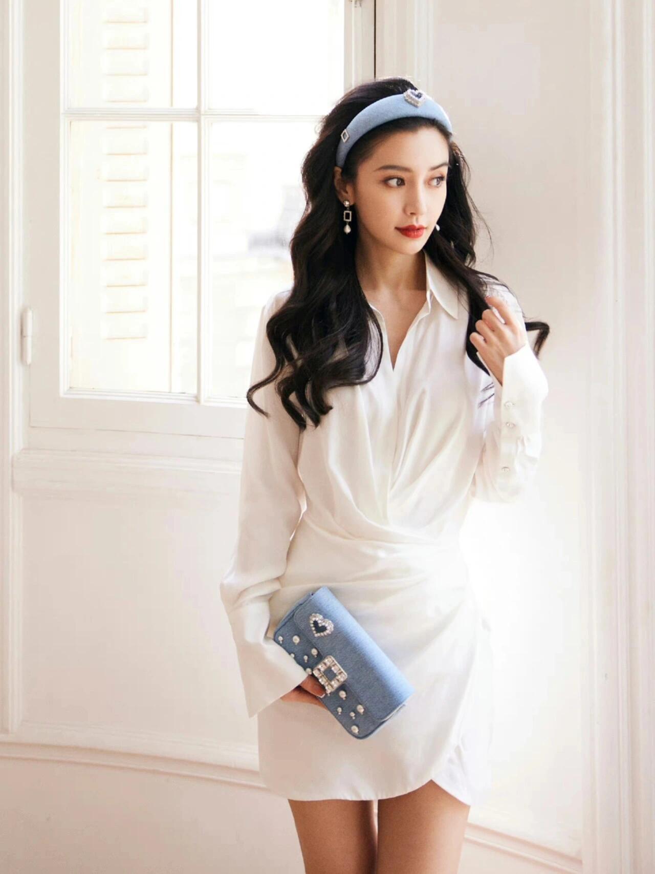 杨颖的颜就问你服不服!衬衫裙都能穿出万种风情