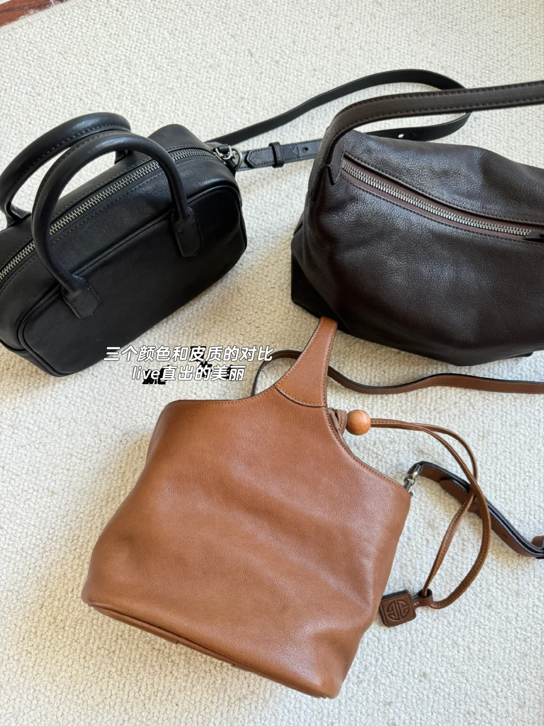 今天分享3只高质感、百搭且可以长期使用的包包 · 植鞣皮具拥有天然、原生性 它将“不完美”示人 筋络、生长纹、乃至蚊虫的叮咬痕迹都是它的独有 也是时间印记刚好的美 · 或许尊重生命的独特与缺憾 继续去拥抱新的人生 热爱新的自己 也不失为一种勇敢 · 购物分享好物分享包包分享轻奢女包新通勤包包时髦单品出街通勤最百搭的包包包包控通勤包包百搭包包奶咖色系