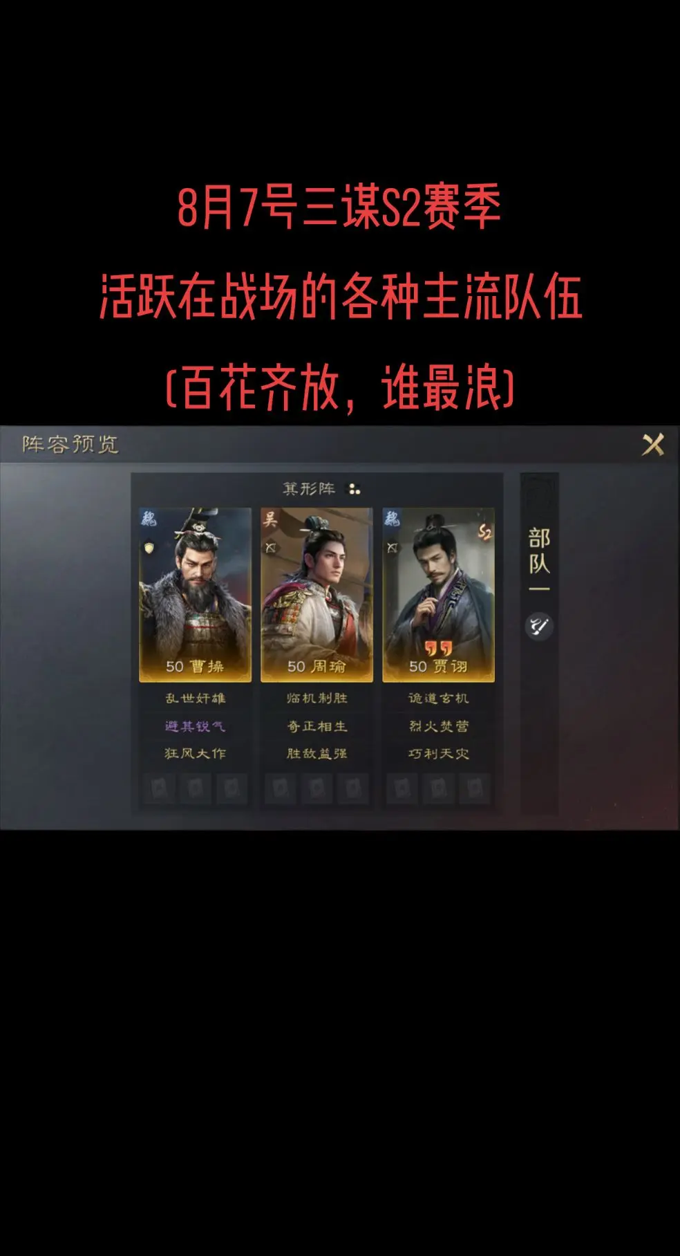 8月7号三谋2赛季战场活跃的主流队伍,你在用哪一队?