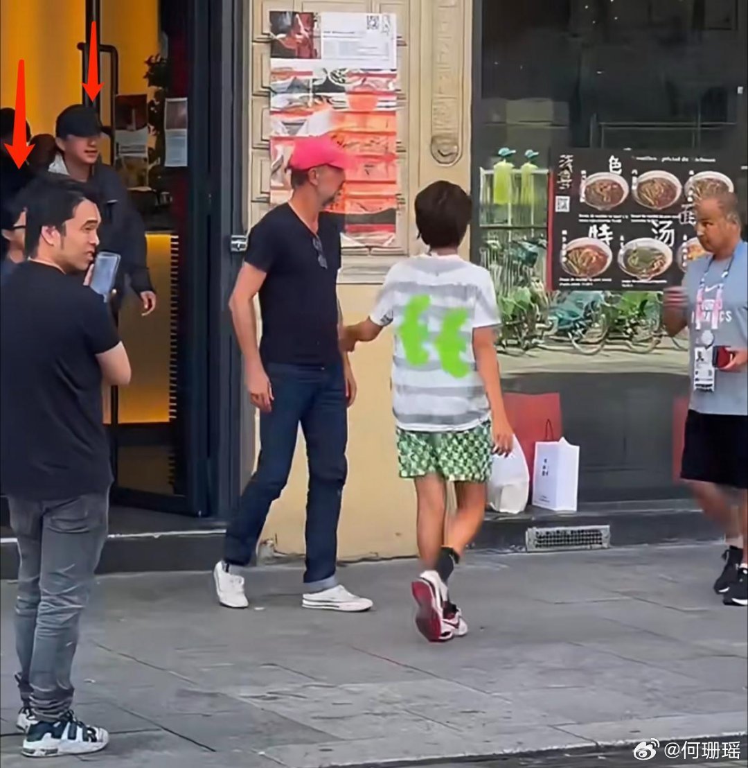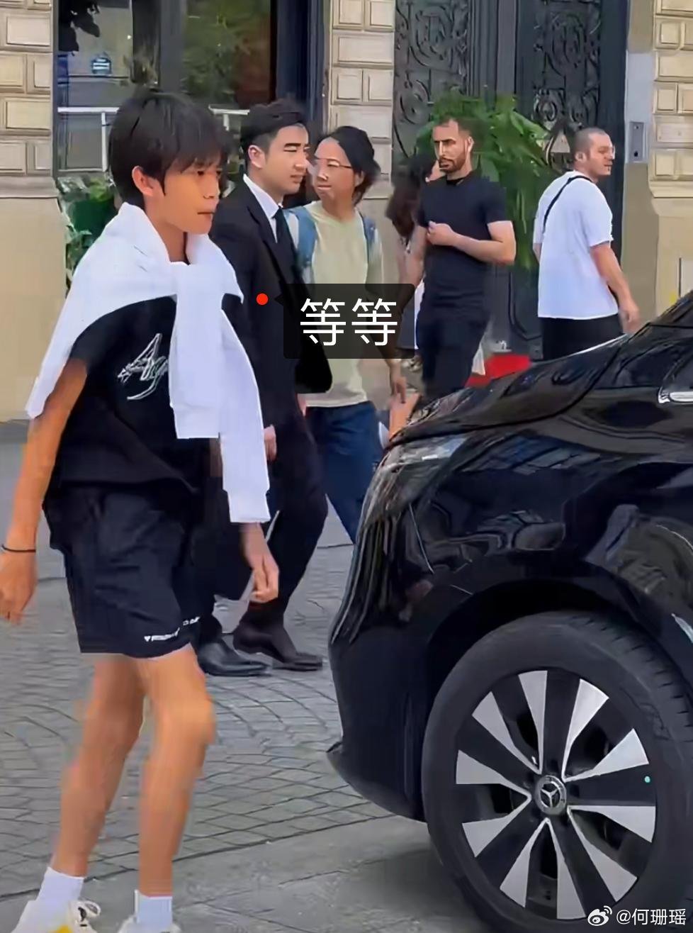 12岁的等等已经是英俊少年了,个子又高又瘦,身穿黑色运动套装,外搭白色运动外套🥼,脚穿白色运动鞋👟,帅气逼人。