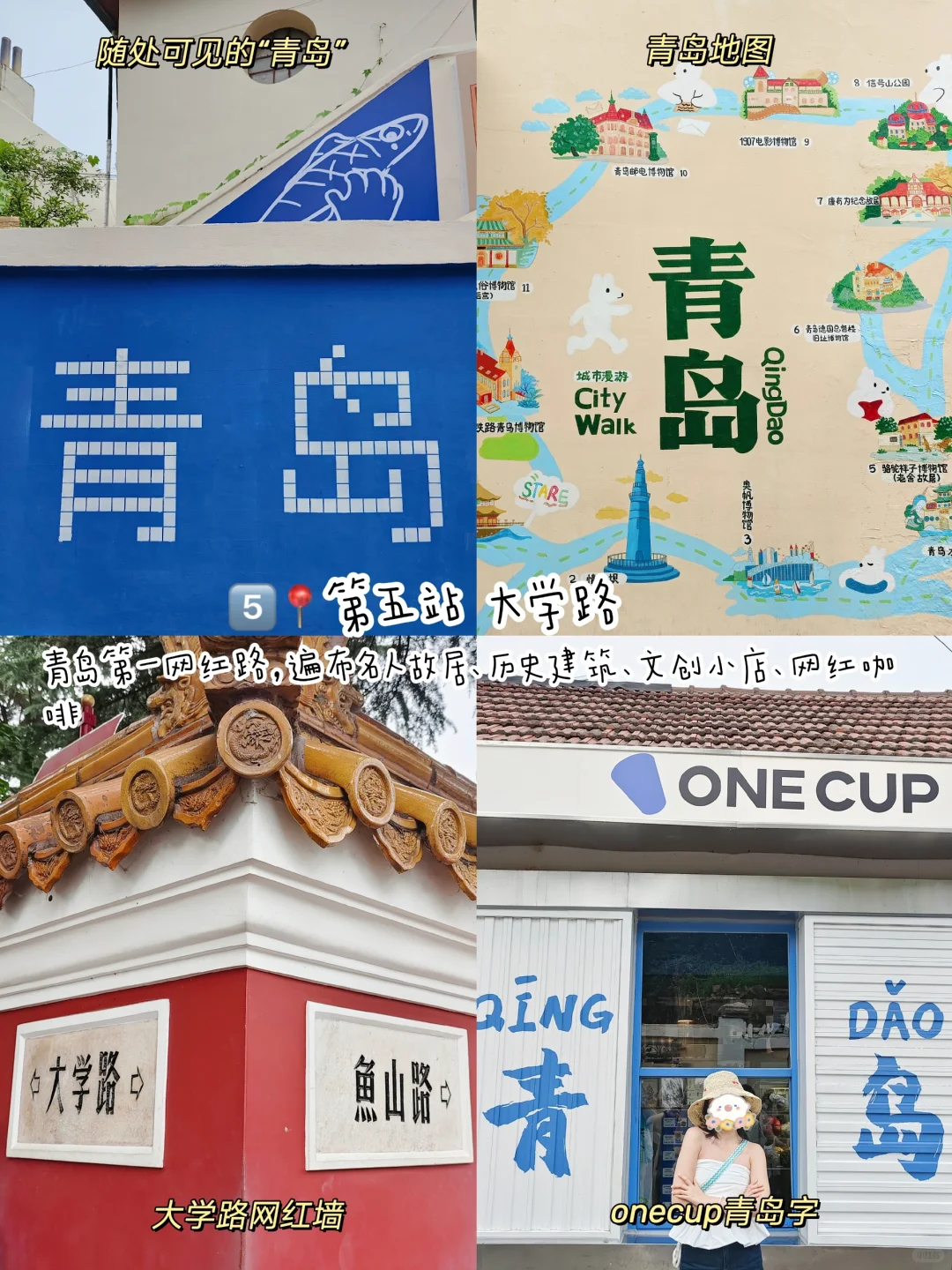 ✔️其他打卡点:大学路网红墙,onecup咖啡的蓝色青岛