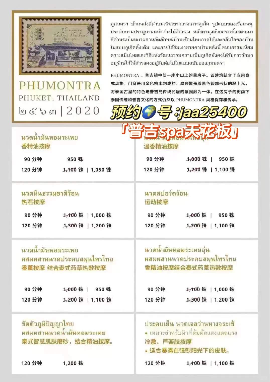 💆♀️马杀鸡,路边随处可见,想干净一点就酒店spa,推荐普吉岛spa天花板phumontra,我把店员号放在2️⃣图上了,可预约2天后的行程,性价比无敌,关键环境服务手法真的很🉑