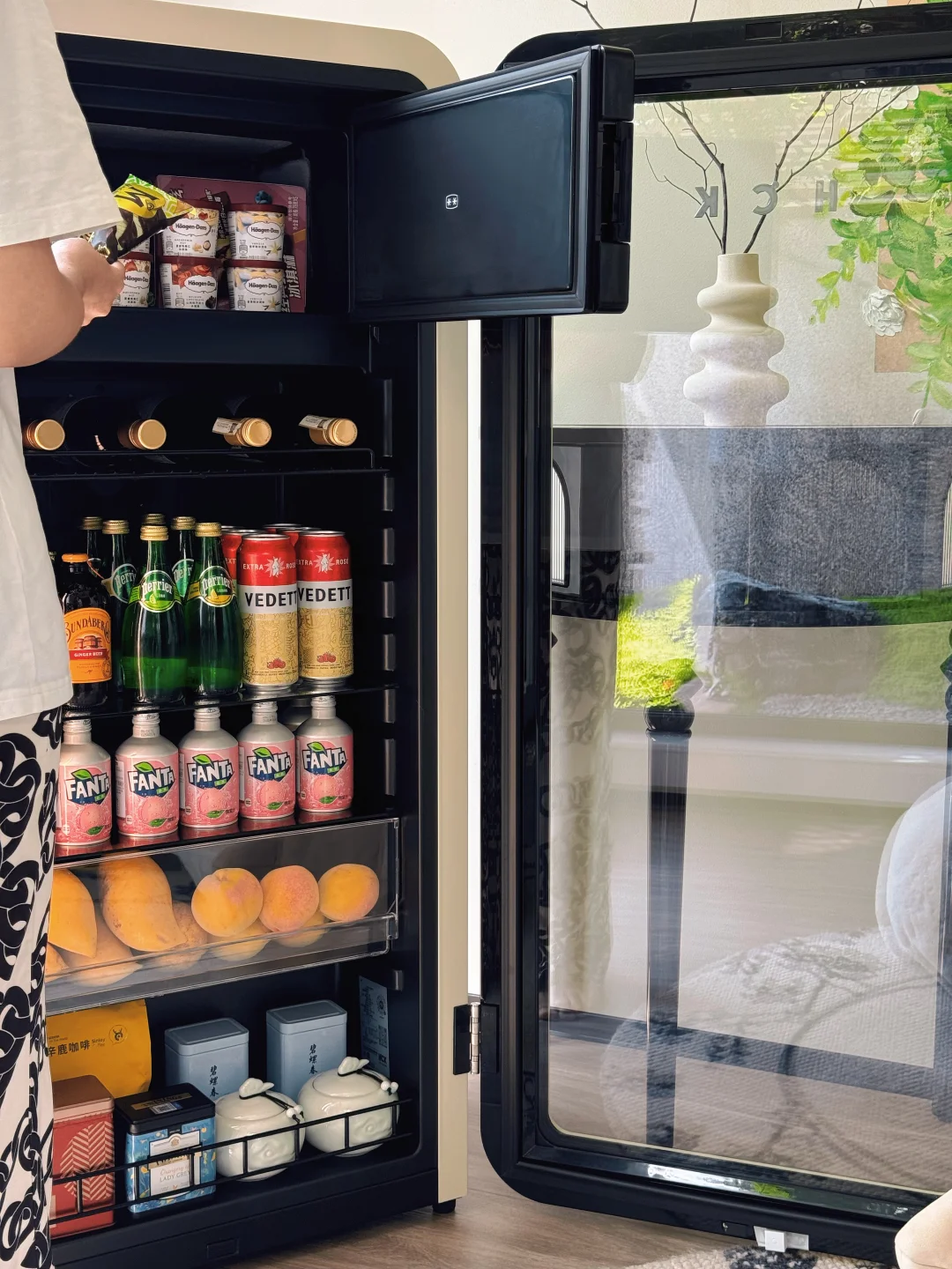 [赞R]占地不大,但很能装,6层168L,自带冷冻,放满了爱吃的冰淇淋🍦和冷饮🍹