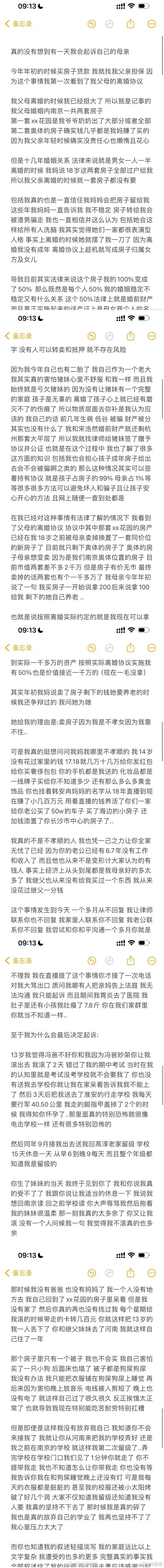 “我父母离婚的时候,我已经挺大了,所以我是记事的。我父母婚姻内,南京一共两套房子🏠。”