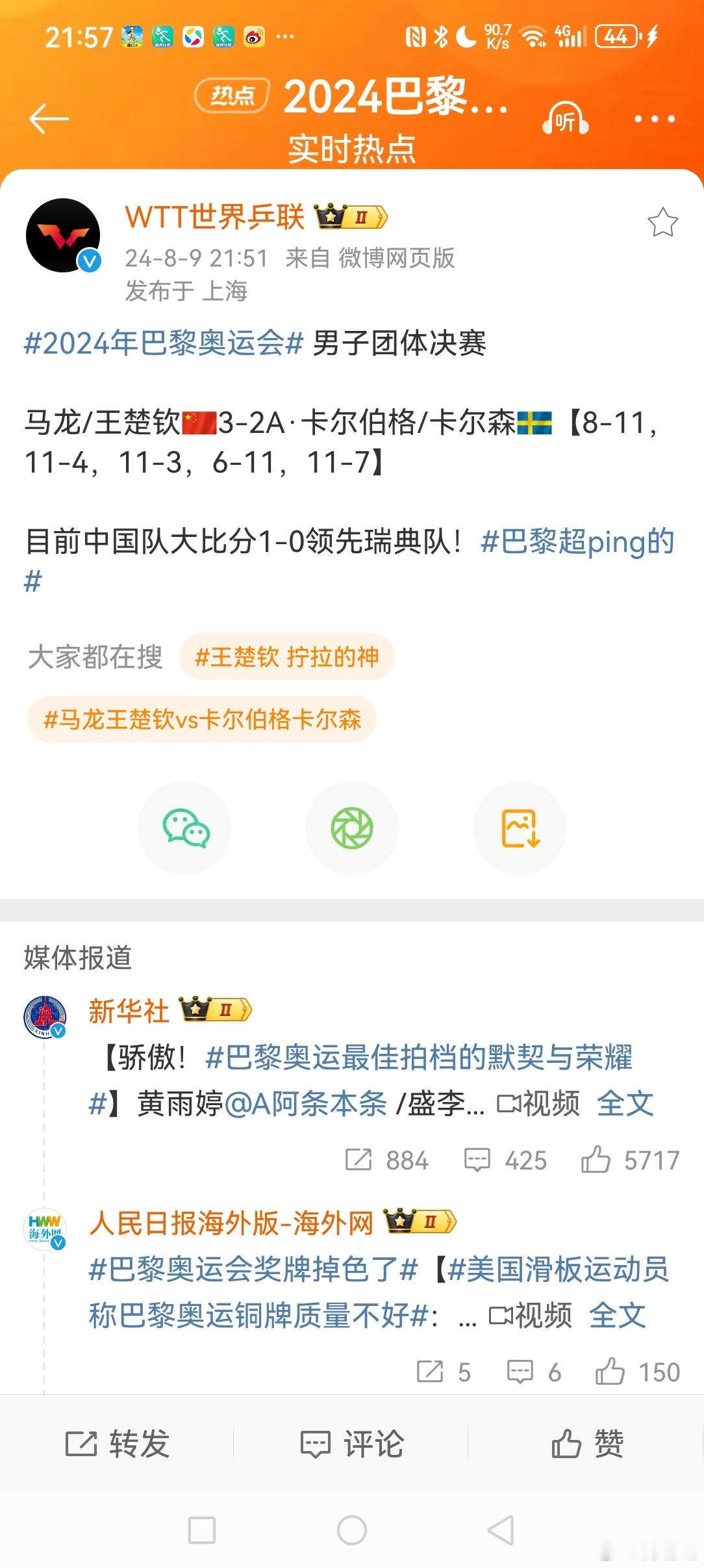 #马龙王楚钦VS卡尔伯格卡尔森##国乒男团VS瑞典#