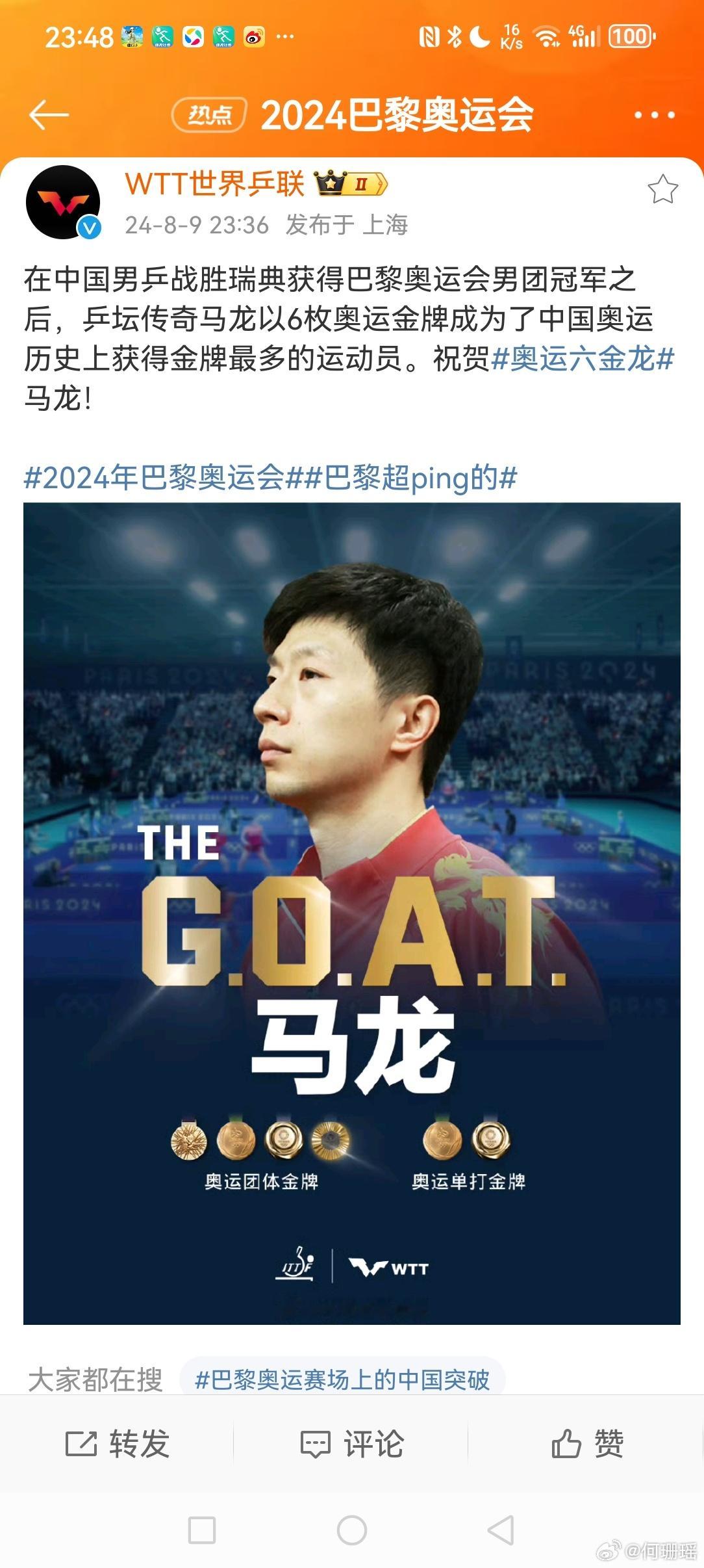 马龙以6枚奥运金牌🥇的骄人战绩,成为中国🇨🇳奥运历史上的“六金王”!