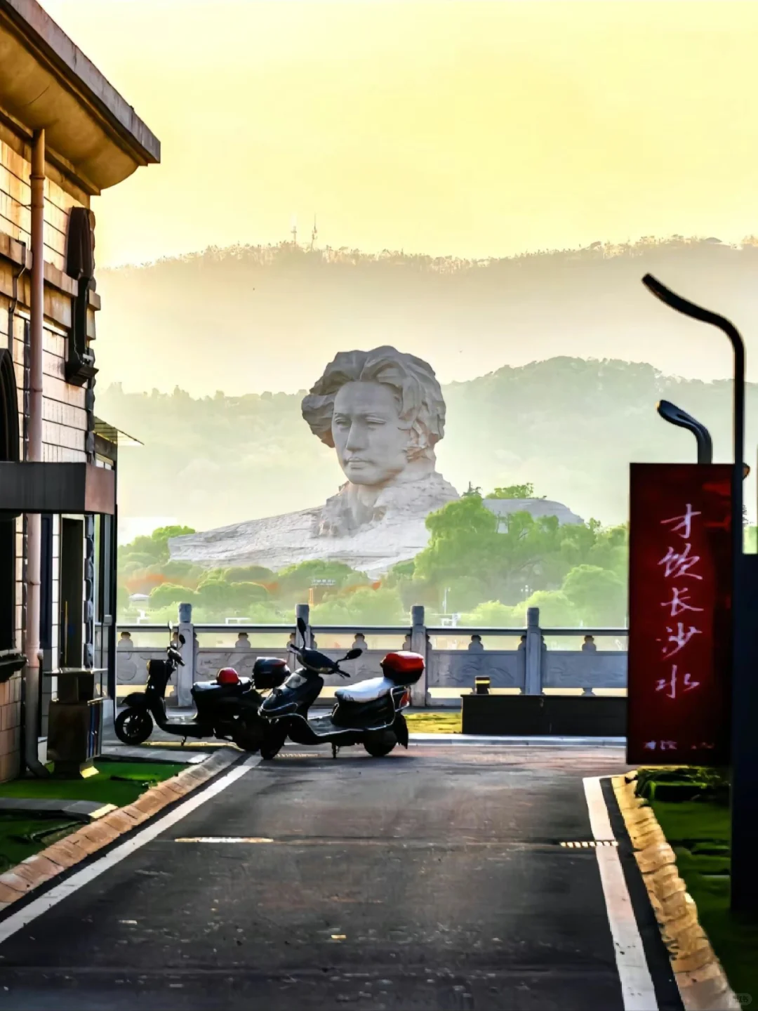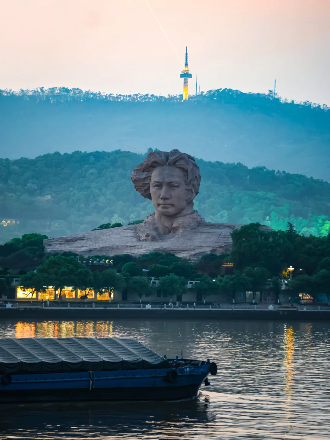 在阜埠河地铁站下车,到湘江江滩公园,可以打卡到青年毛泽东雕像和摩天大楼同框