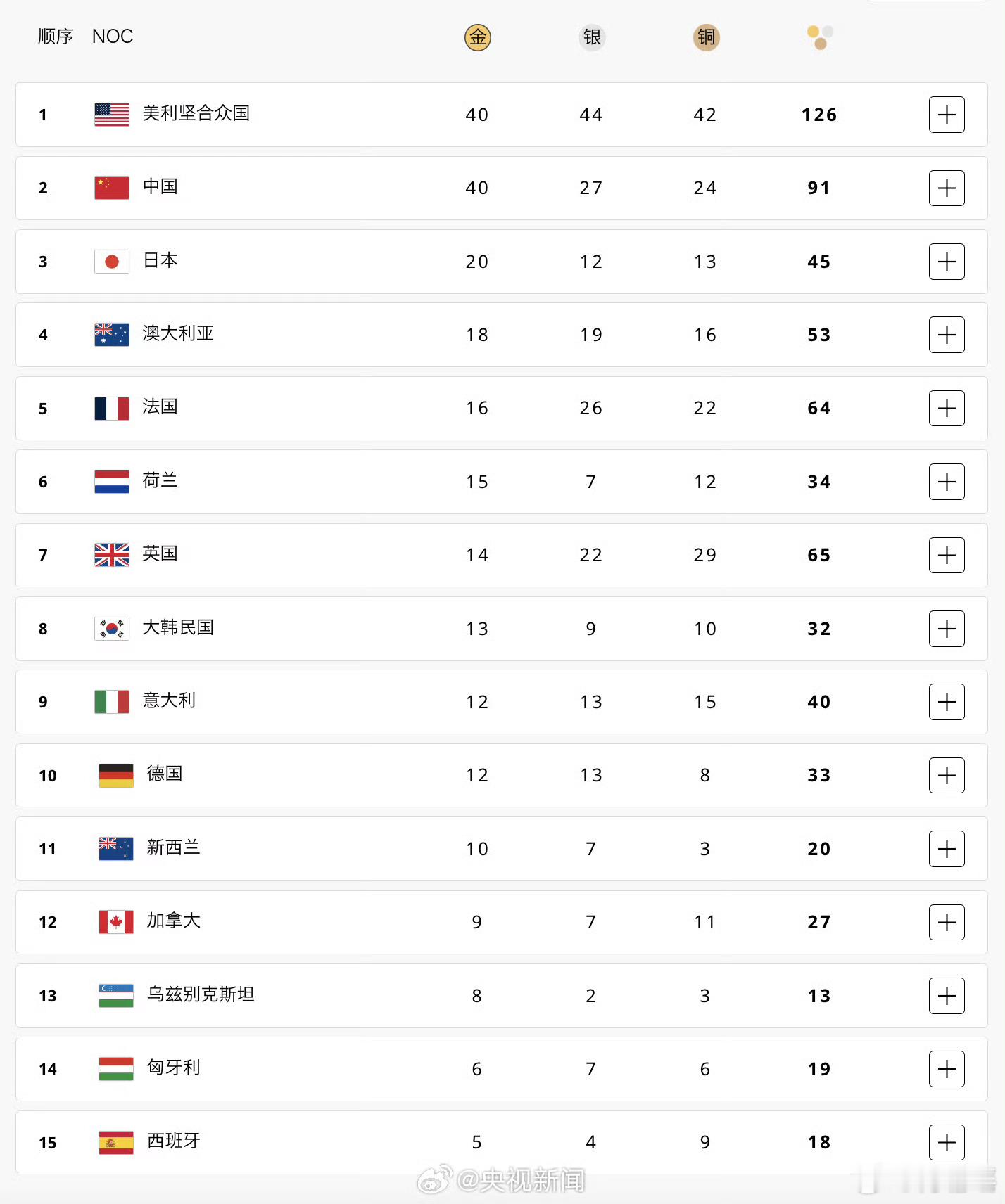 8月12日,巴黎奥运会圆满闭幕,中国体育代表团共收获40金🥇27银🥈24铜🥉,总奖牌🏅91枚,金牌🥇数与美国🇺🇸金牌🥇数持平,并列第一!