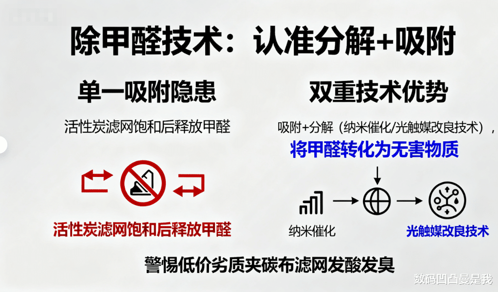 除甲醛的核心是避免二次污染,单纯依赖活性炭吸附的机型,滤网饱和后会重新释放甲醛。必须选择“吸附 + 分解” 双重技术的产品,比如采用纳米催化、光触媒改良等技术的机型,能将甲醛转化为无害物质,从根源解决问题。同时要警惕低价机型的劣质夹碳布滤网,这类滤网易发酸发臭,反而加剧污染。