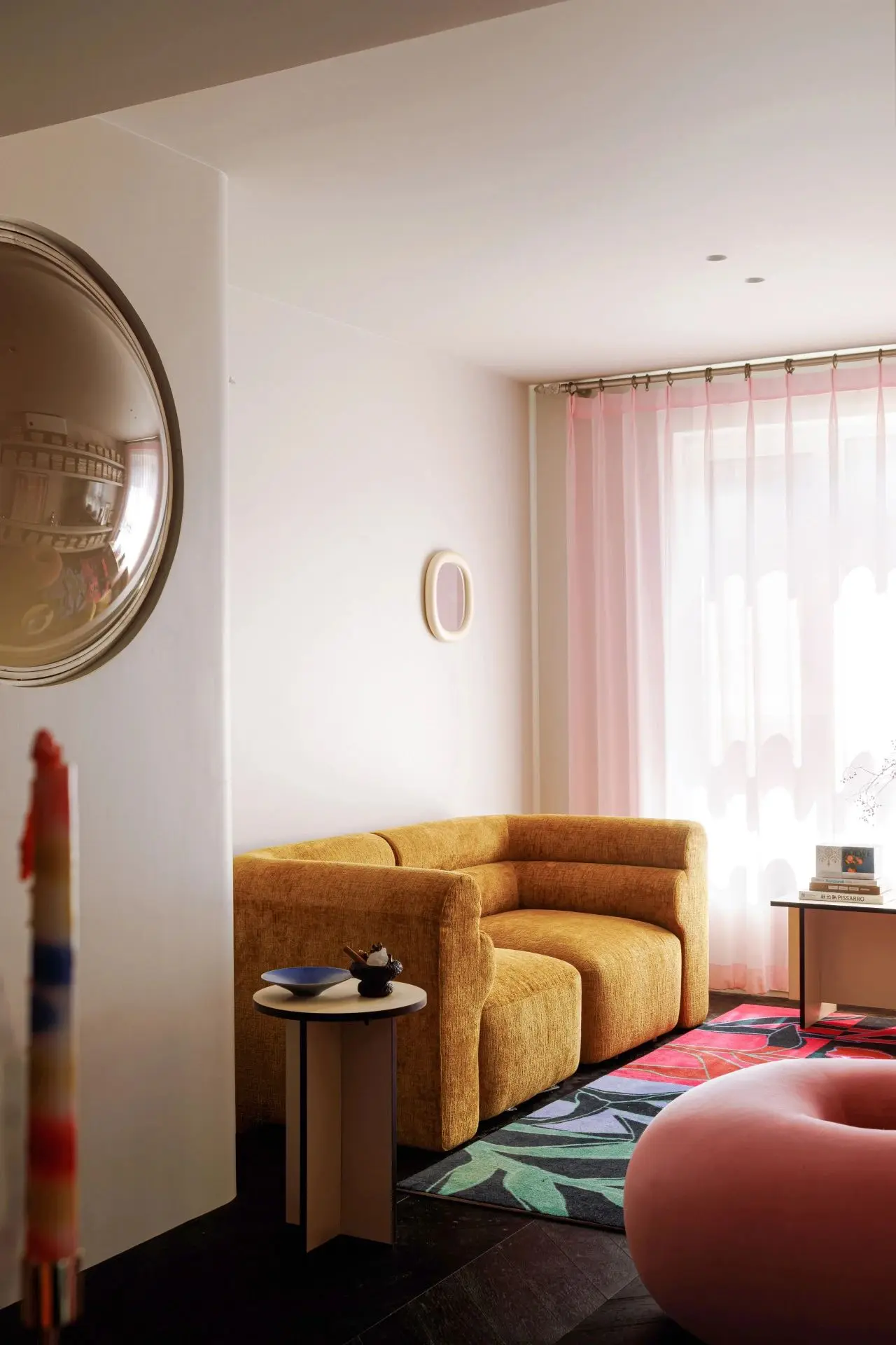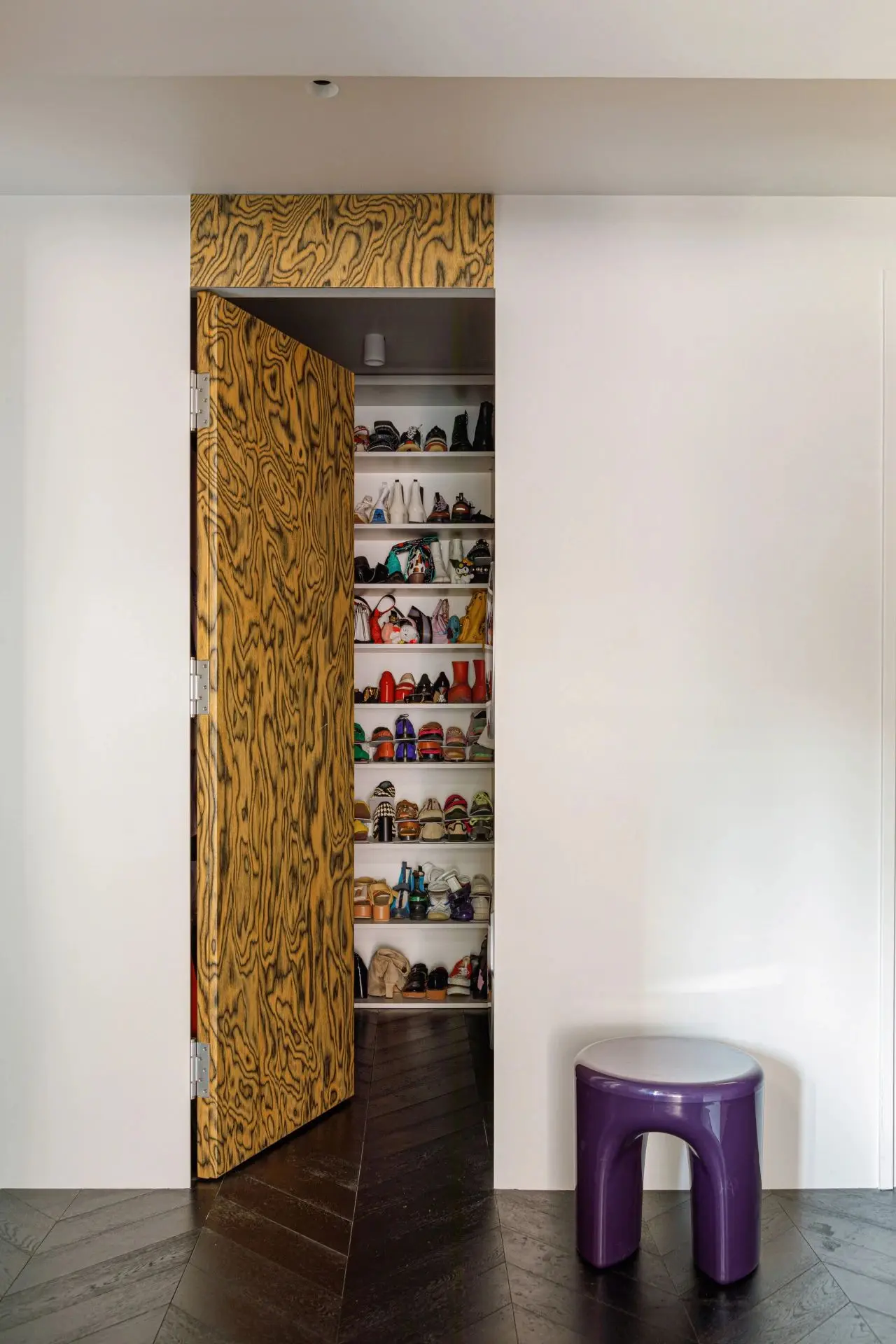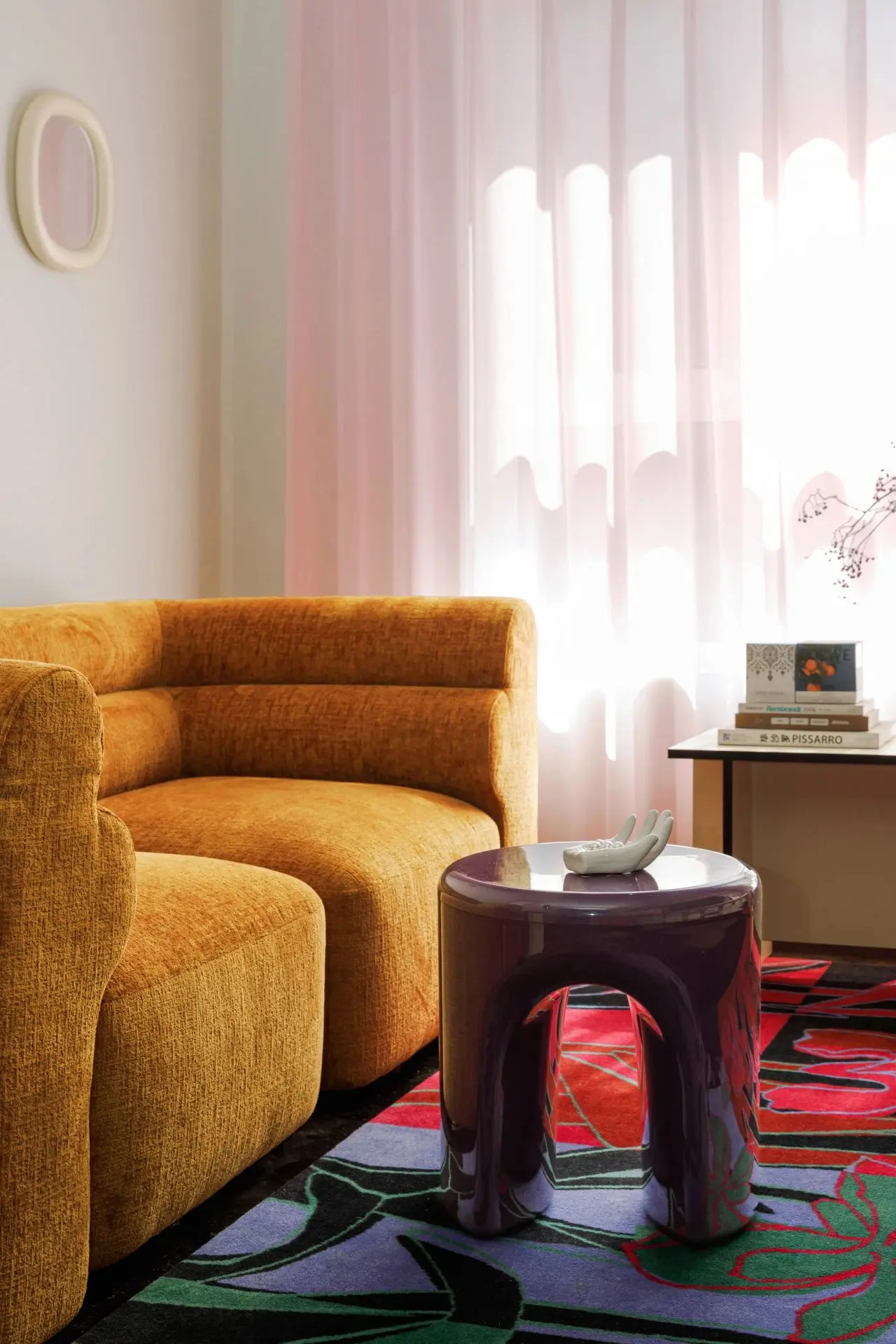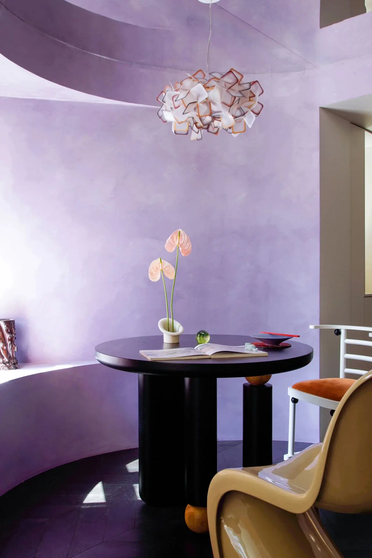采访当日,李辰希穿着一件紫色佩斯利花纹的衬衫,耳畔带着两串淡紫色的紫藤花造型耳环,紫,是她的主题,也是家的主题。这个土生土长的北京00后女孩,一直徜徉在艺术的世界中,在纽约留学后归国深造艺术设计。她热爱色彩,却不止甜美,目标清晰,也懂有舍有得,一旦认定的事,困难再大也要努力实现。设计师对她的理解是“审美里有股野性”,于是便诞生了这个充满生命力的家。今天,DECO就带你走进这个家,看看74㎡的小空间,如何装下两间卧室、一个衣帽间,以及满室的缤纷色彩。