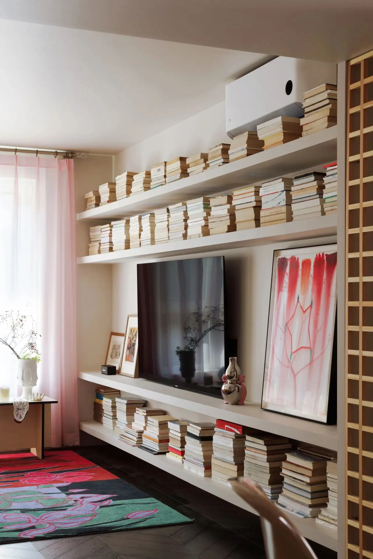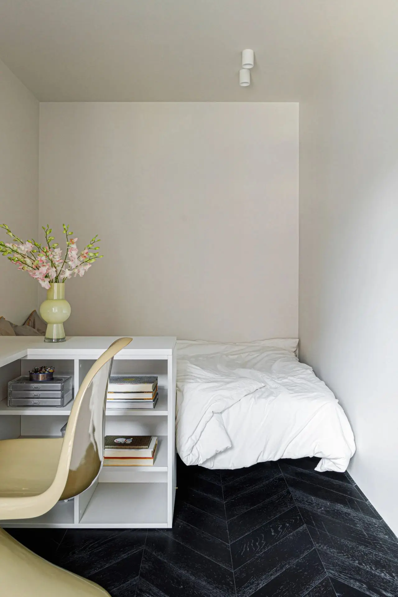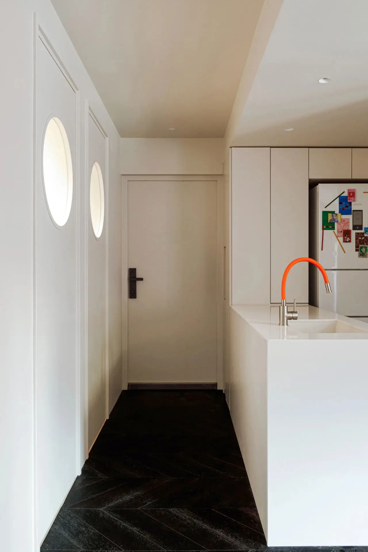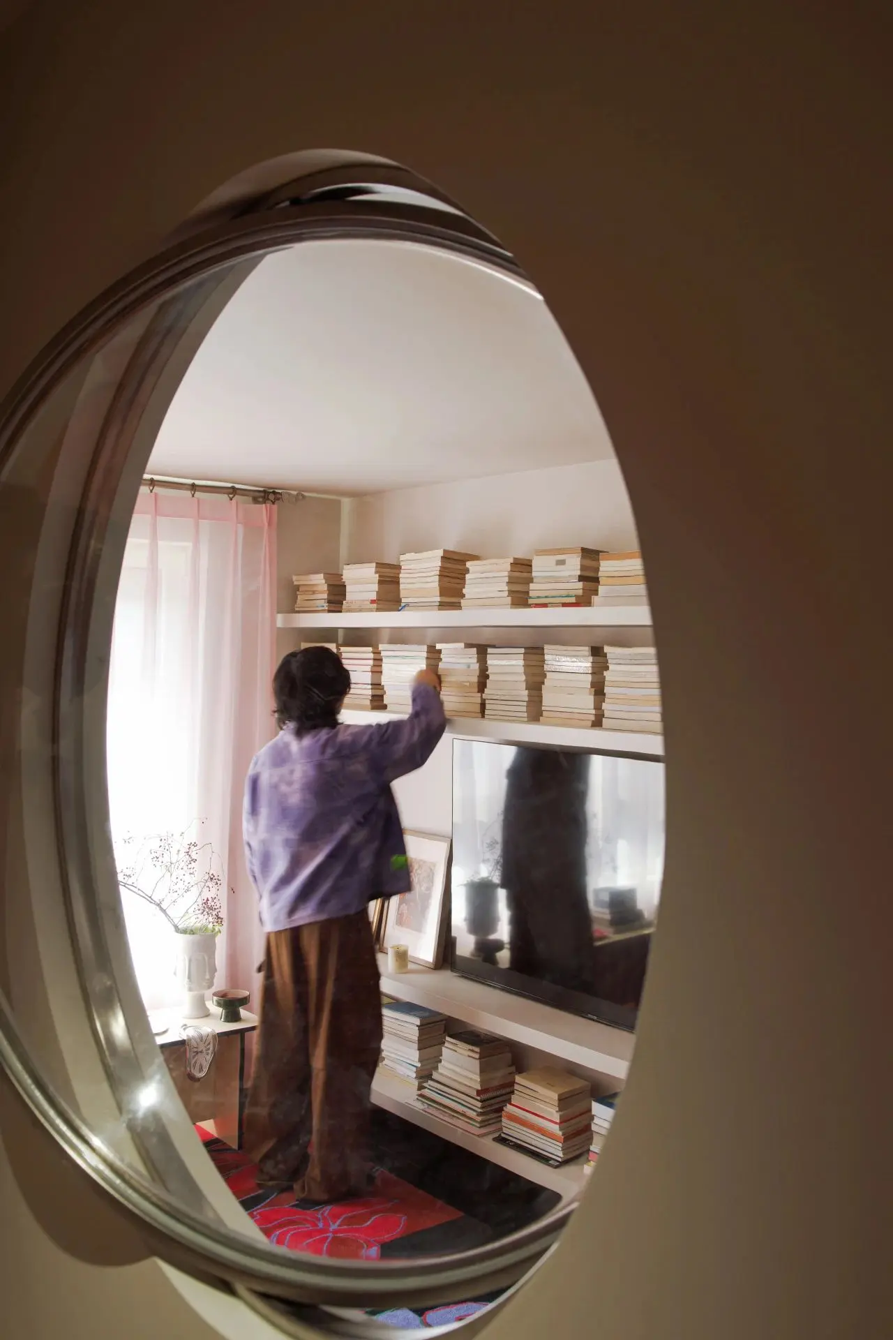 采访当日,李辰希穿着一件紫色佩斯利花纹的衬衫,耳畔带着两串淡紫色的紫藤花造型耳环,紫,是她的主题,也是家的主题。这个土生土长的北京00后女孩,一直徜徉在艺术的世界中,在纽约留学后归国深造艺术设计。她热爱色彩,却不止甜美,目标清晰,也懂有舍有得,一旦认定的事,困难再大也要努力实现。设计师对她的理解是“审美里有股野性”,于是便诞生了这个充满生命力的家。今天,DECO就带你走进这个家,看看74㎡的小空间,如何装下两间卧室、一个衣帽间,以及满室的缤纷色彩。