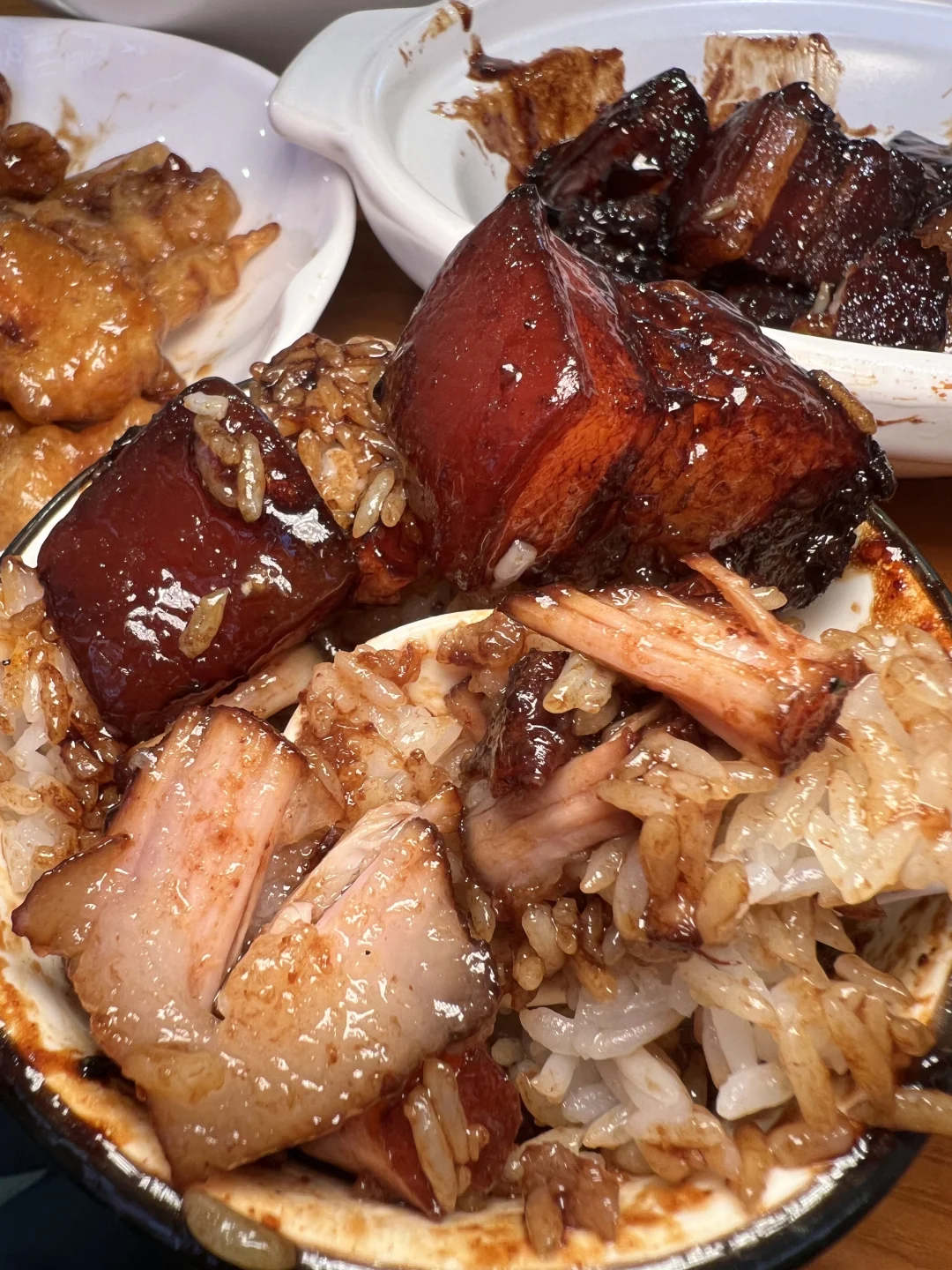 他家的桂花糕特别软糯,吃着还不粘牙 红烧肉做的特别入味,软烂烂的 和牛煲仔饭上桌就拌开了,锅巴多特别香 他家很适合干饭