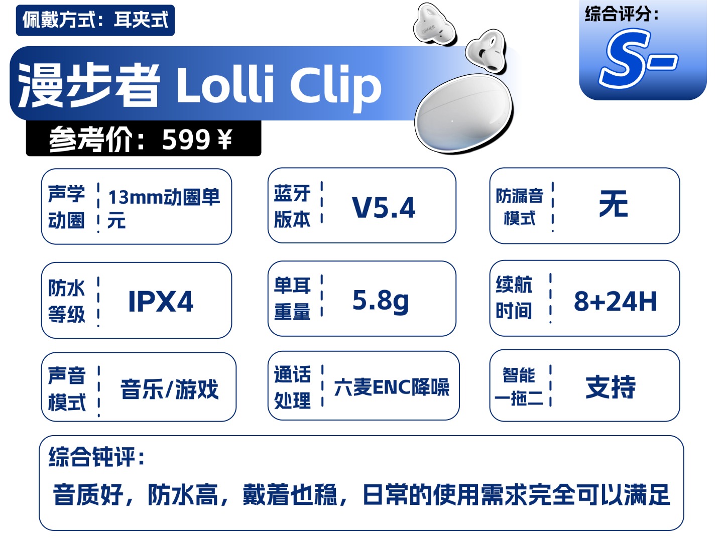 不过选耳机时,品牌也很关键。市面上做耳夹式耳机的牌子不少,但我更推荐大家选有知名度的,踩坑的概率会小很多。比如漫步者、声阔、虹觅这几个,我都试过它们的产品,不管是佩戴舒适度还是功能表现,都比较让人放心,下面也给大家具体推荐几款不同价位的,大家可以根据预算选。