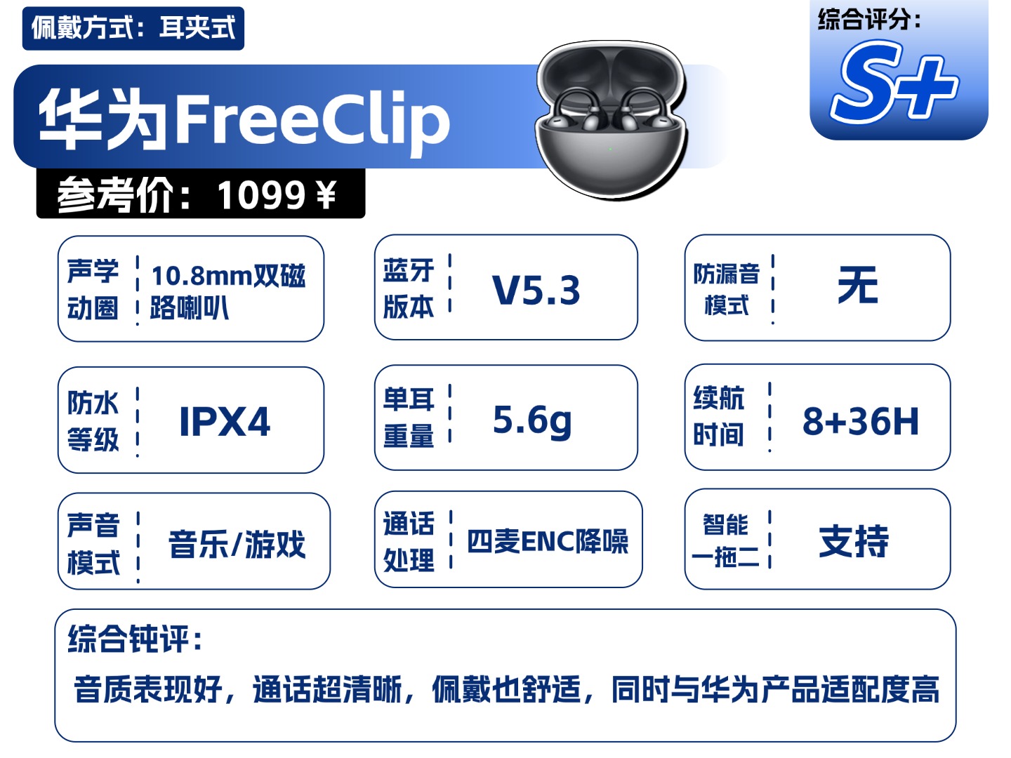 推荐理由:2025年百元档耳夹式耳机里的最强款,实际使用体验完全能媲美五百元级别的产品!