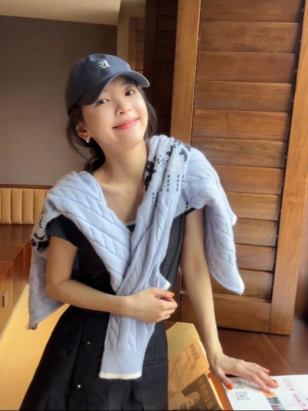 章若楠更新随拍啦,好美好温柔!! 章若楠穿搭,蓝色T恤搭配蓝色毛衣温柔又随性 楠楠这套穿搭好松弛呀,简简单单的好百搭