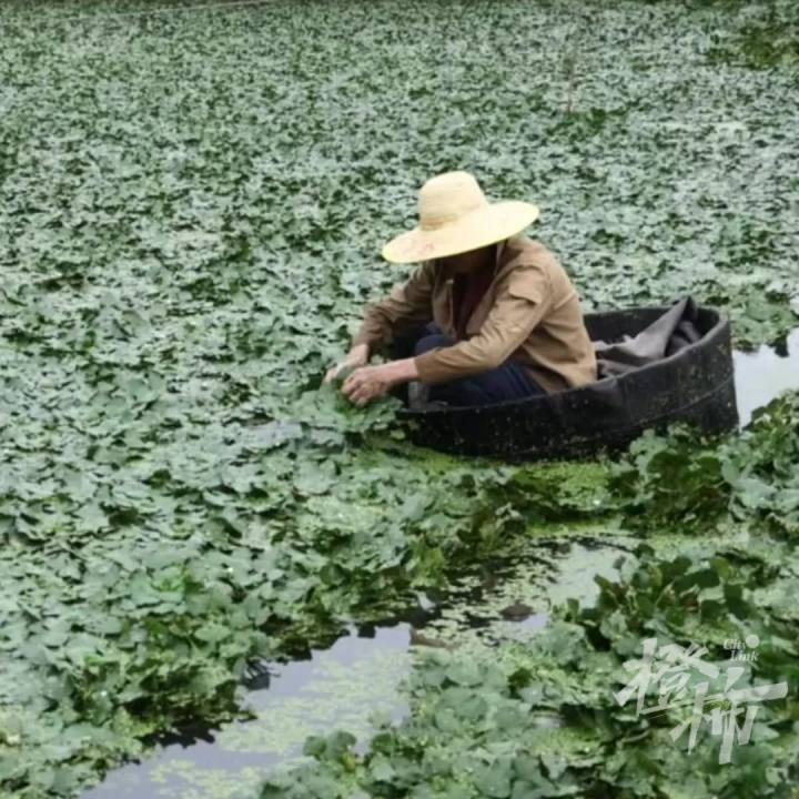 在仁和街道渔公桥村的菱田里,年近八旬的菱农陈连松熟练地划着菱桶,在菱叶间自如穿梭,手指轻轻一掐,一颗颗饱满的菱角便落入桶中。不一会儿,菱桶就被装得满满当当。
