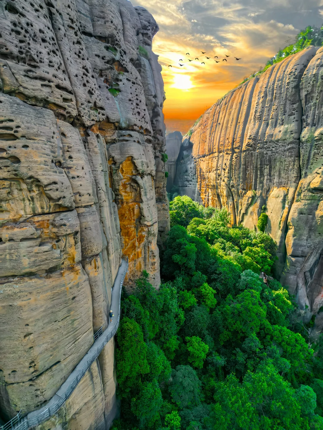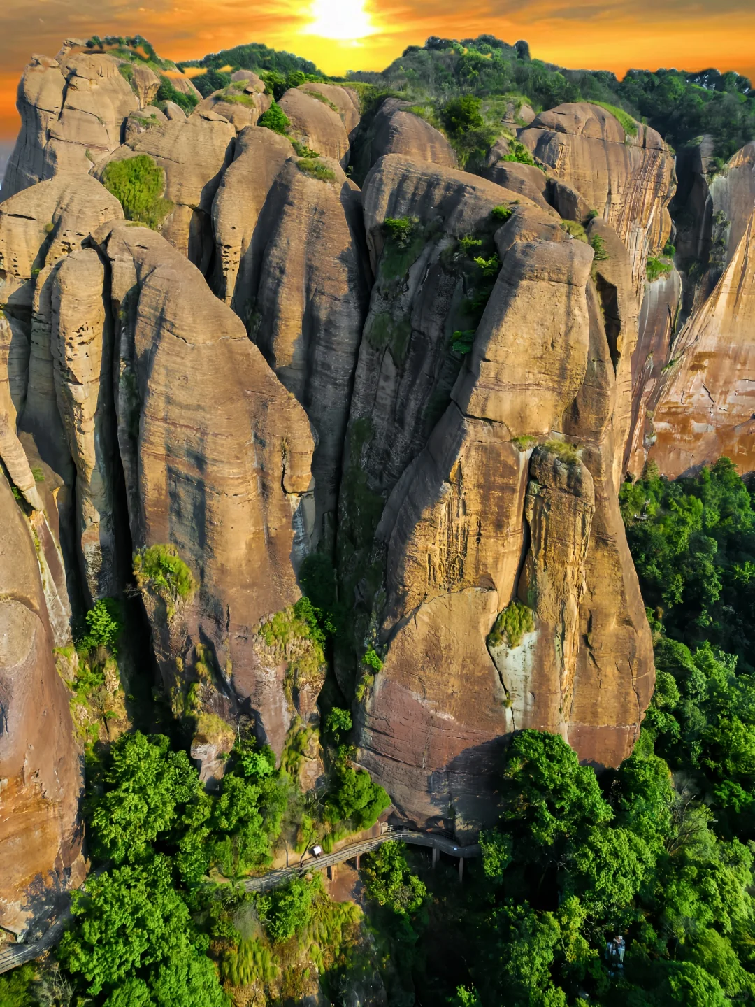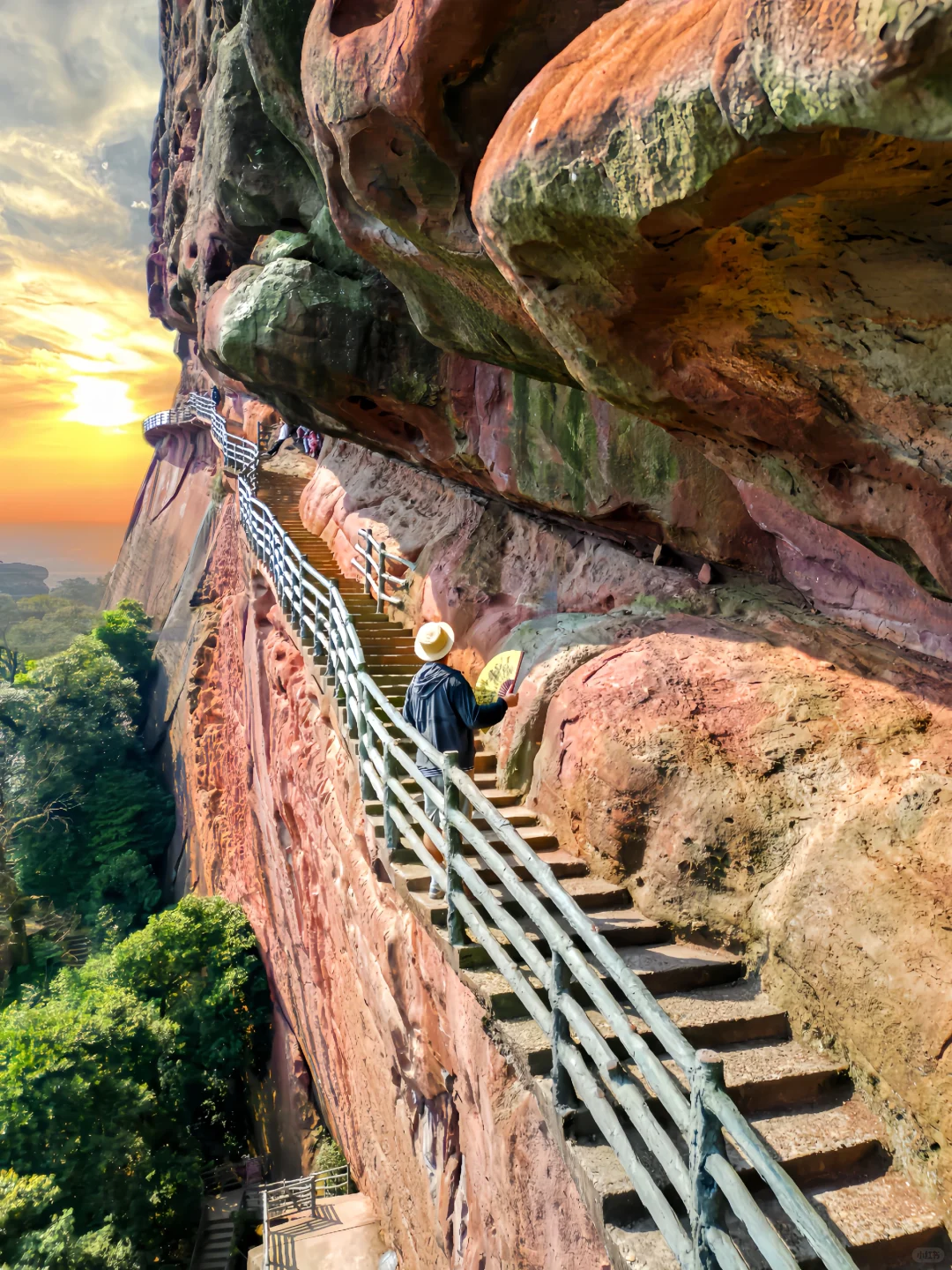 这个暑假如果你去了趟黄山 也可以顺便去一趟这个宝藏仙山 就在黄山隔壁,不用人挤人 人少景美,体验感拉满 丹霞拍照很出片,体验包场的快乐🎉 . 【我的游玩路线】 入住开元名庭酒店➡️桂花园➡️将军楼➡️三道口➡️十八罗汉休息点➡️金钟峰顶➡️环山步道➡️玻璃栈道➡️骆驼峰服务点➡️清水塘➡️水世界 . 游玩tips🌟: 1️⃣游玩爬山小白路线(桂花园-将军楼-好汉坡,紫薇园),游玩两个小时附近,比较轻松,适合带小朋友的 2️⃣徐霞客原线路(神🐢迎宾-百年道-天女散花-将军楼-好汉坡-紫薇园),游玩三个小时附近,有点难度挑战 3️⃣从景区坐观光车到锁春洞下,然后开始登山 4️⃣要带上登山鞋🥾,摩擦力大的鞋子,山上易滑 5️⃣可以在山下准备好水,较为便宜 6️⃣如果选择上面两个线路,推荐下午三点出发,还可以在山顶欣赏日落,太阳光和丹霞光影结合更震撼 ✅打卡拍照 🔸好汉坡:岩石顶部开凿的小路,拍照很出片,仿佛侠客仙游 🔸骆驼峰:zui高峰,登顶可以一览无遗,看日出云海日落都很不错 🔸一线天:两座陡峭山峰之中的狭窄山道,从下往上看,好像一条线通往天边 🔸水上乐园:看完风景,可以玩水纳凉,游玩项目丰富,很适合亲子互动游玩,爬完山玩水真的很赞😎