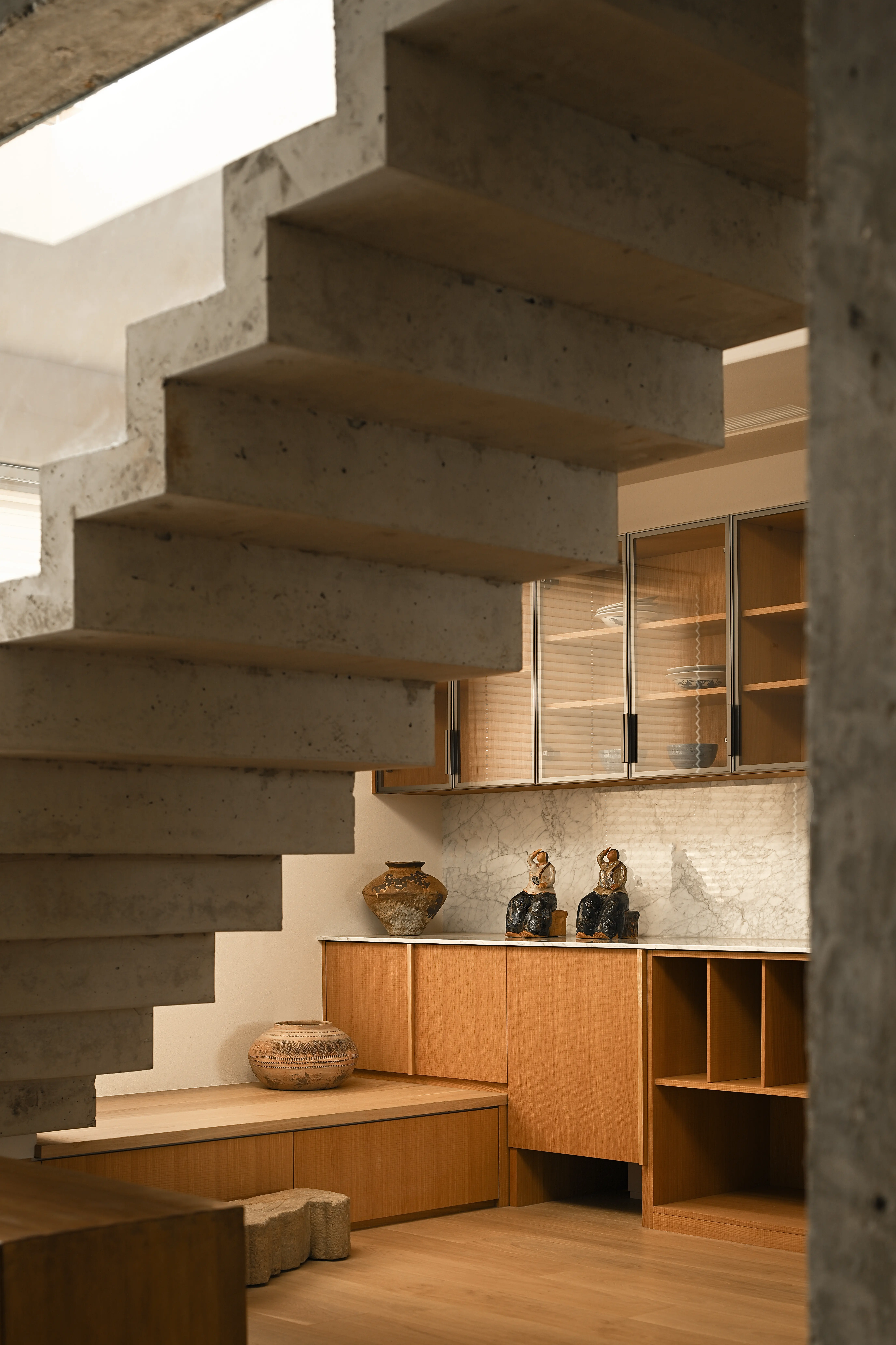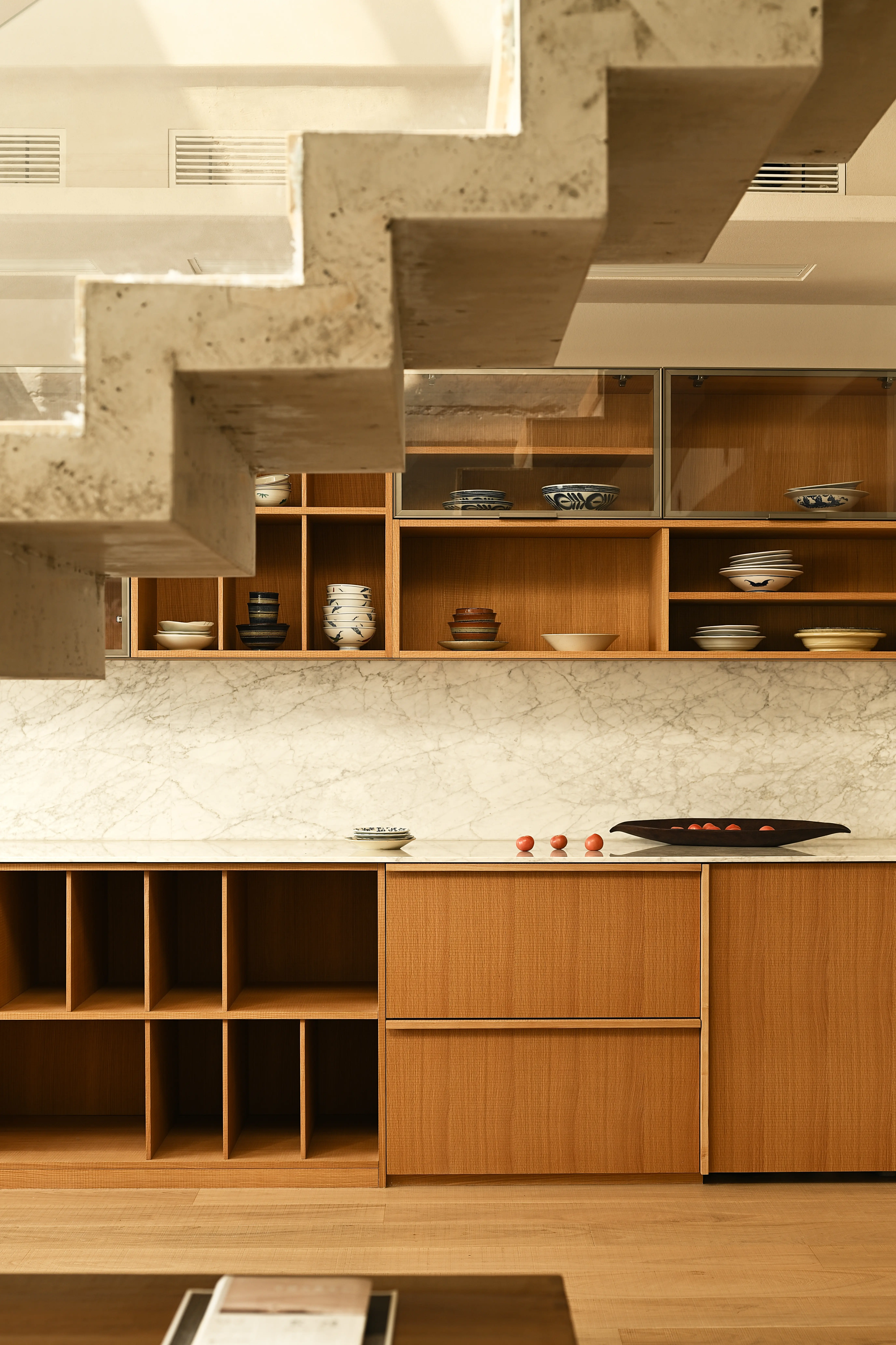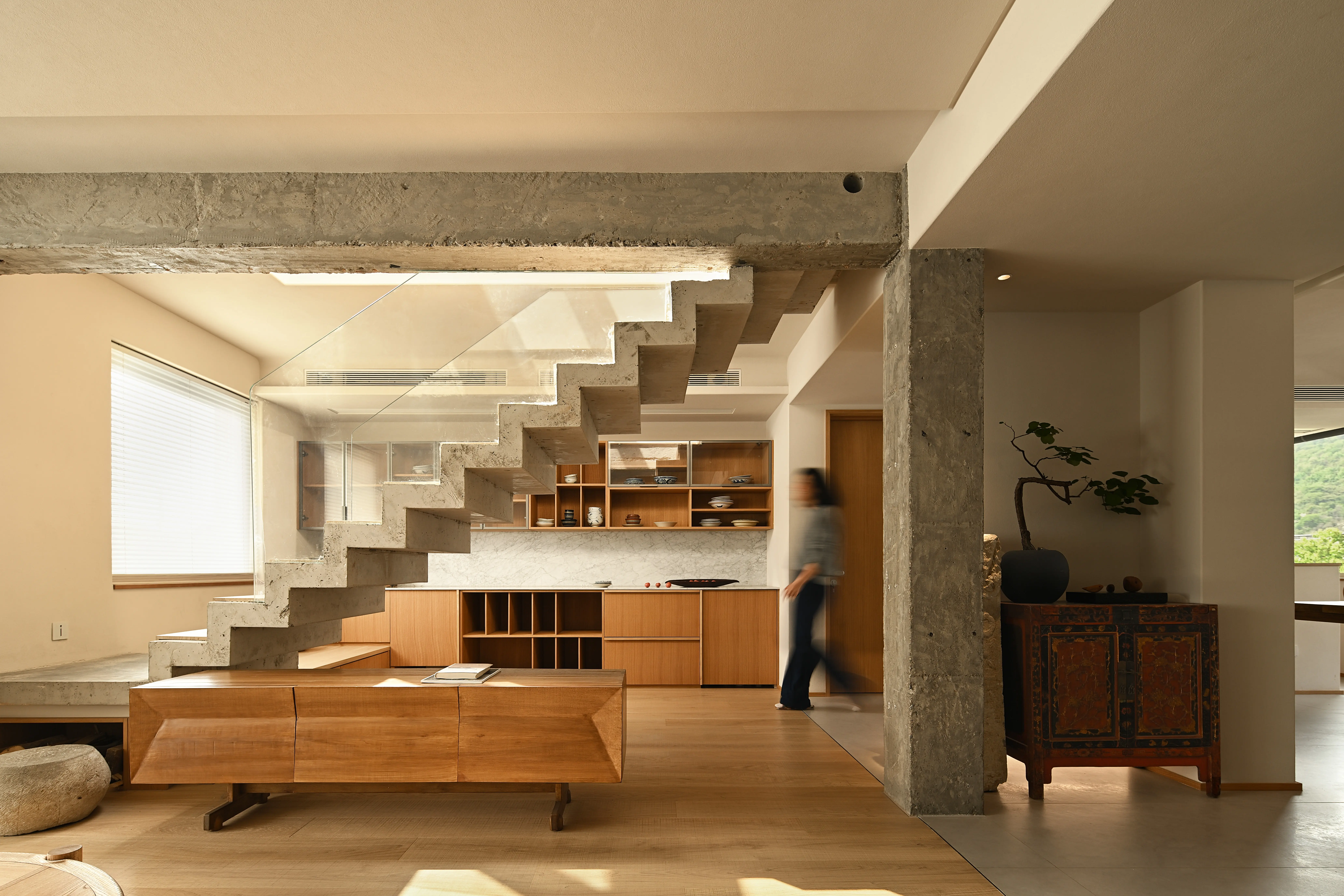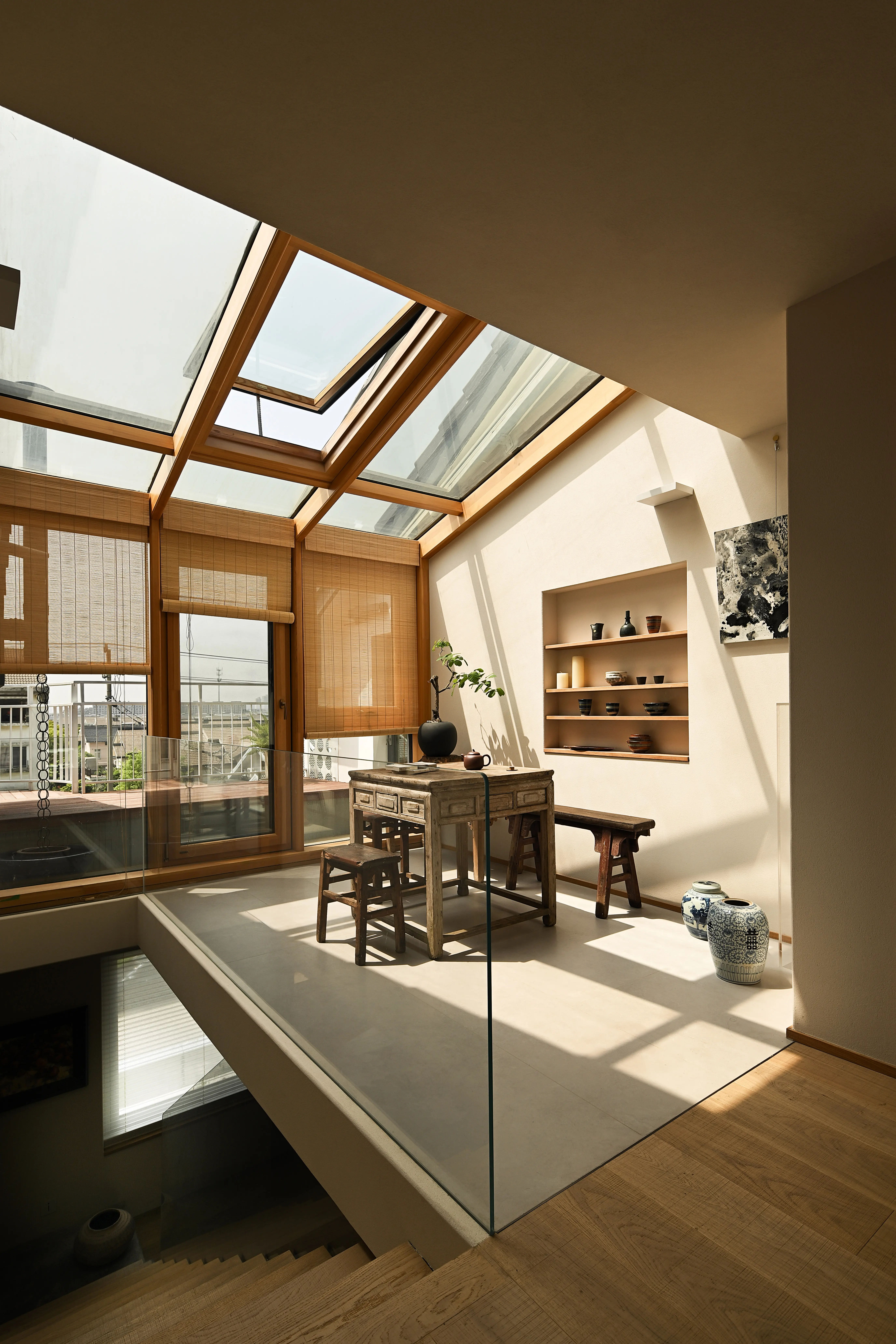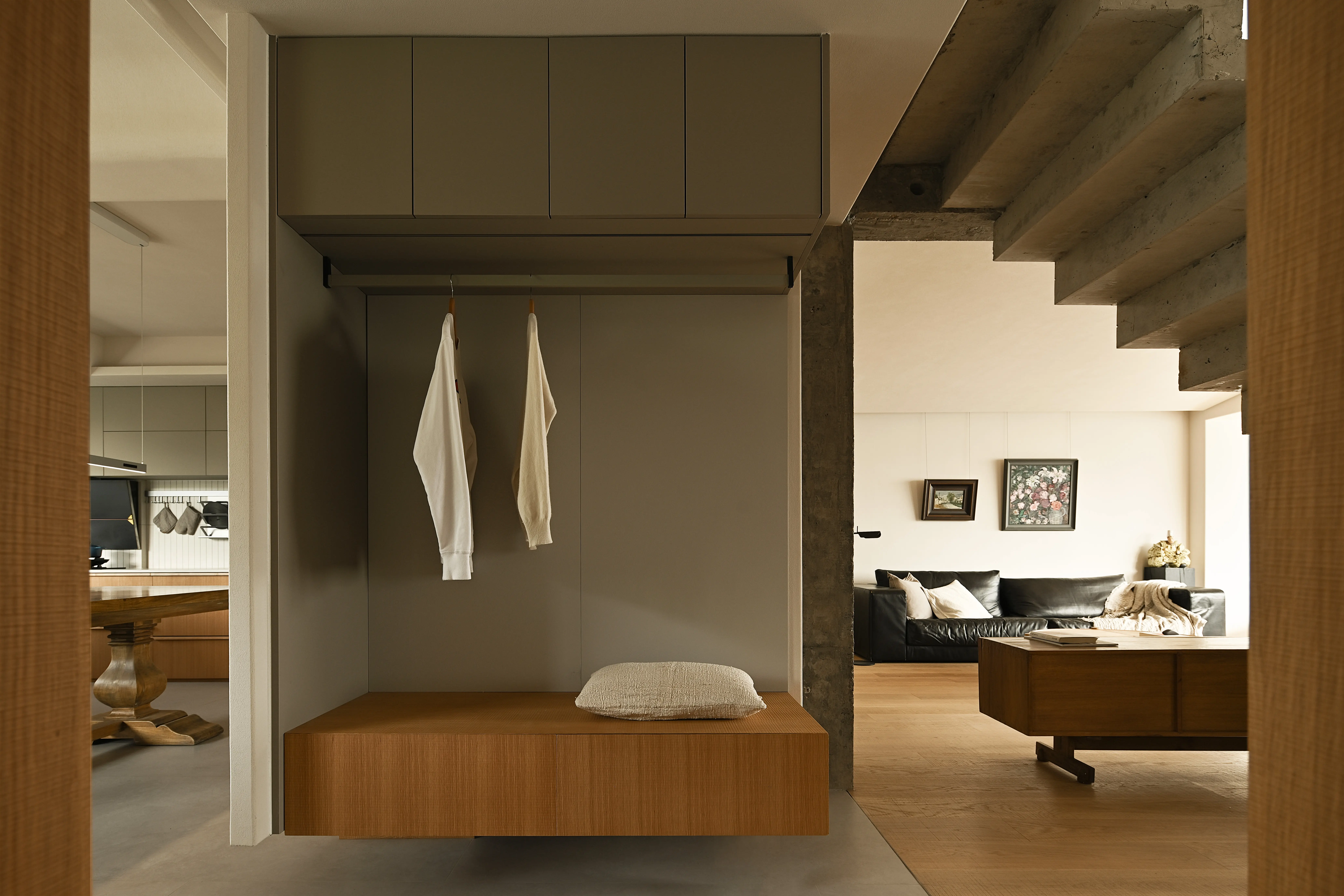 禾景大陈设计创始人陈静200平的家位于常熟虞山尚湖风景区,又紧邻古城商业街区,依山傍水又不乏生活的烟火气息,颇有闹中取静之意。除了优越的地理位置,大陈一家选择搬进这座三层复式带阁楼的公寓的初心也很简单,就是想生活得更舒适自在些,在家中可以随心地做着自己喜欢的事来消磨时光。 ELLEDECO年度家居灵感复式公寓设计空间美学装修灵感库