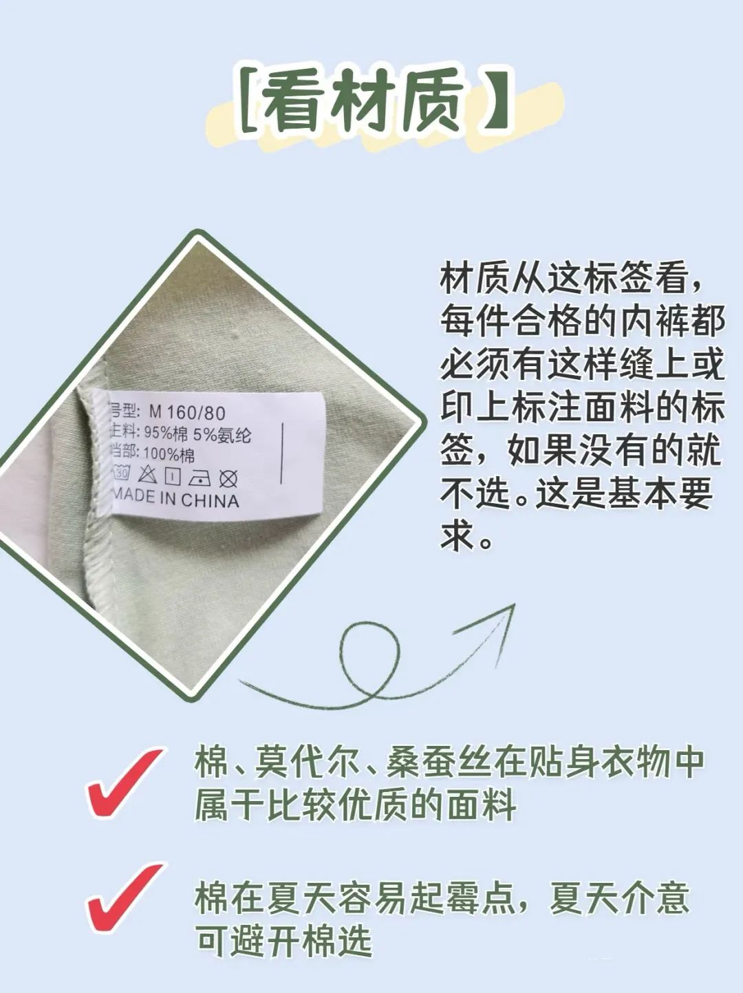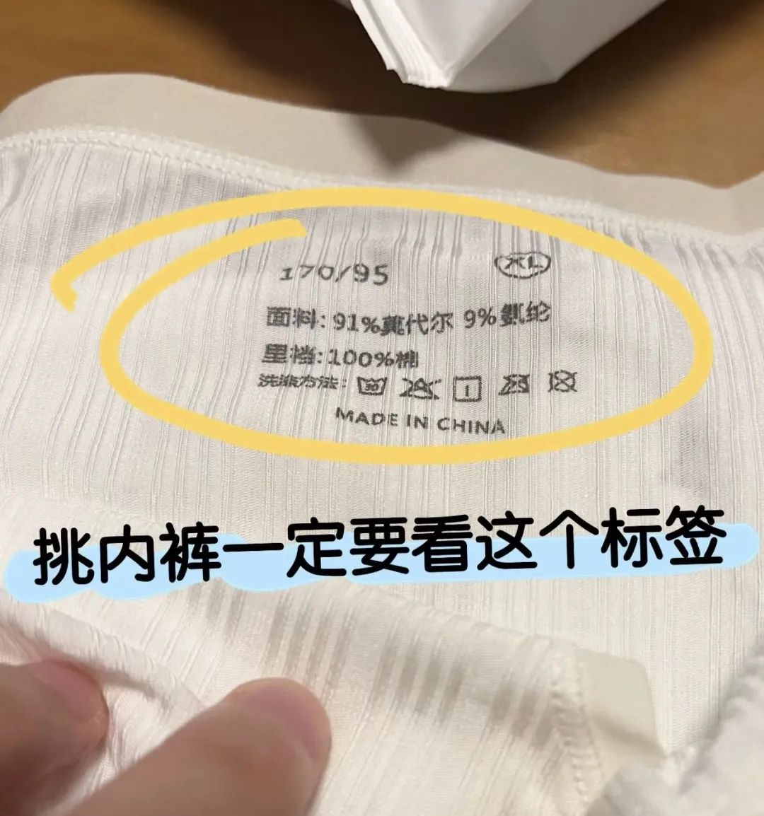 大家也一样,选内裤时,一定要看清楚材质,尽量选纯棉的。