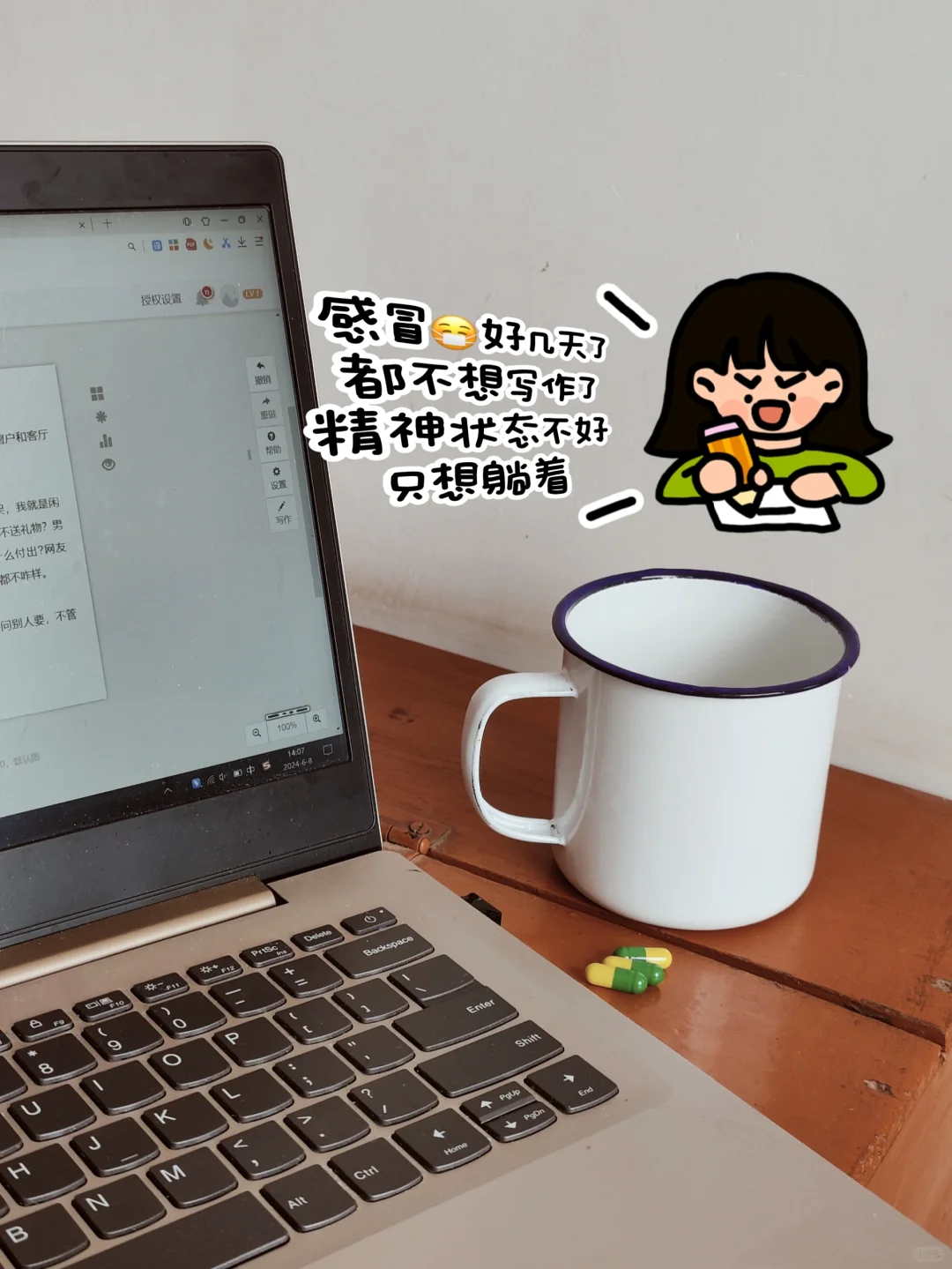 这几天感冒了,喝了💊不管用,可能我前几天睡觉开着卧室的窗户、客厅的窗户吹着了,还吃凉西瓜吃雪糕🍦,我就是自己瞎折腾的,以后不敢瞎干了。