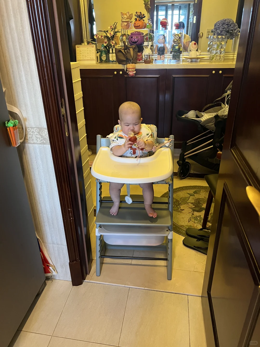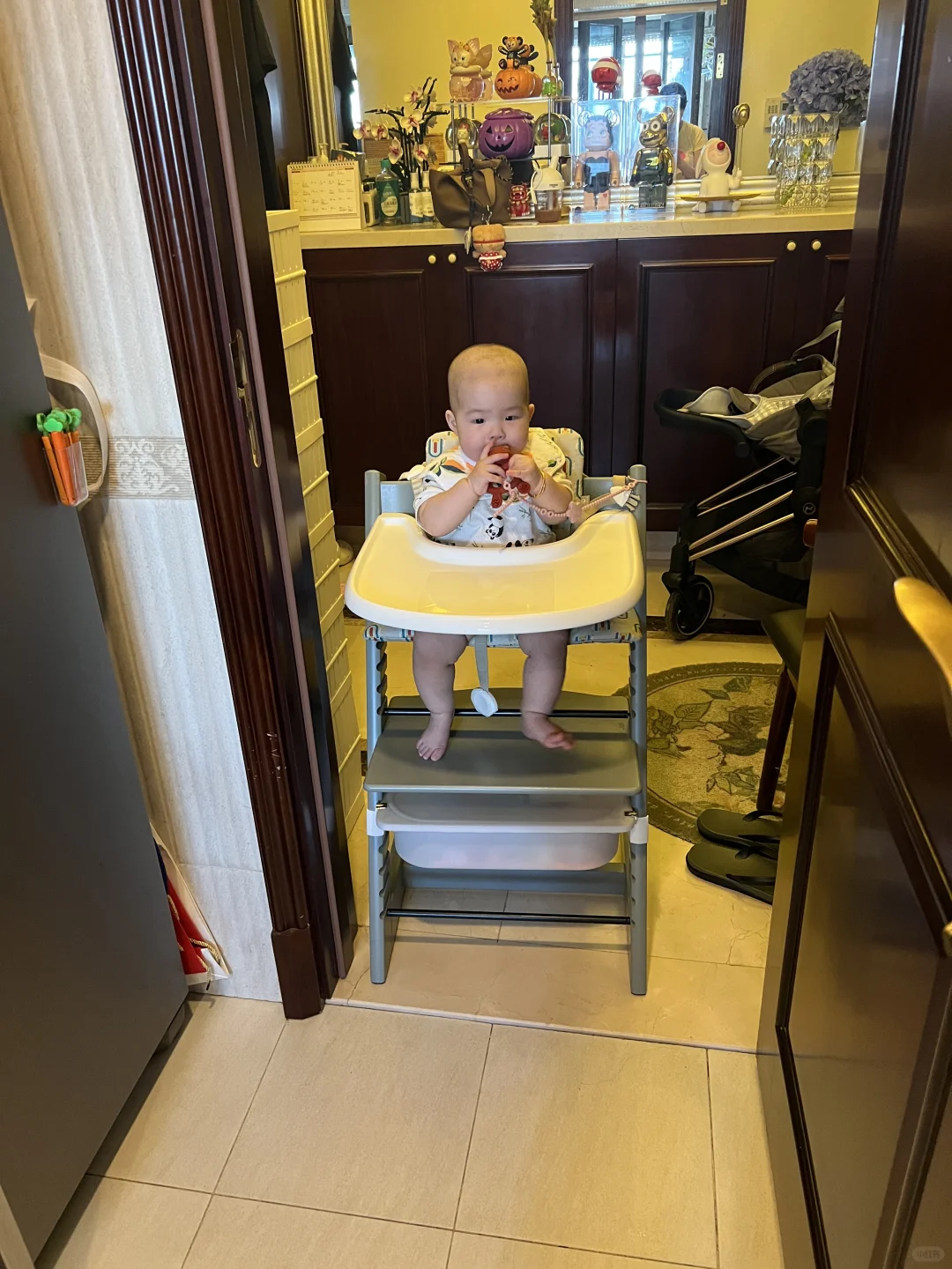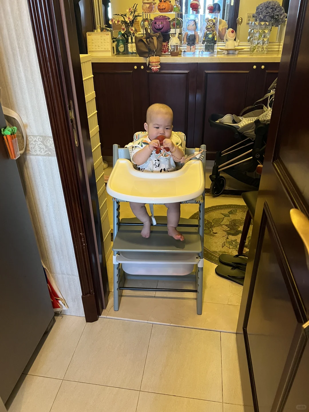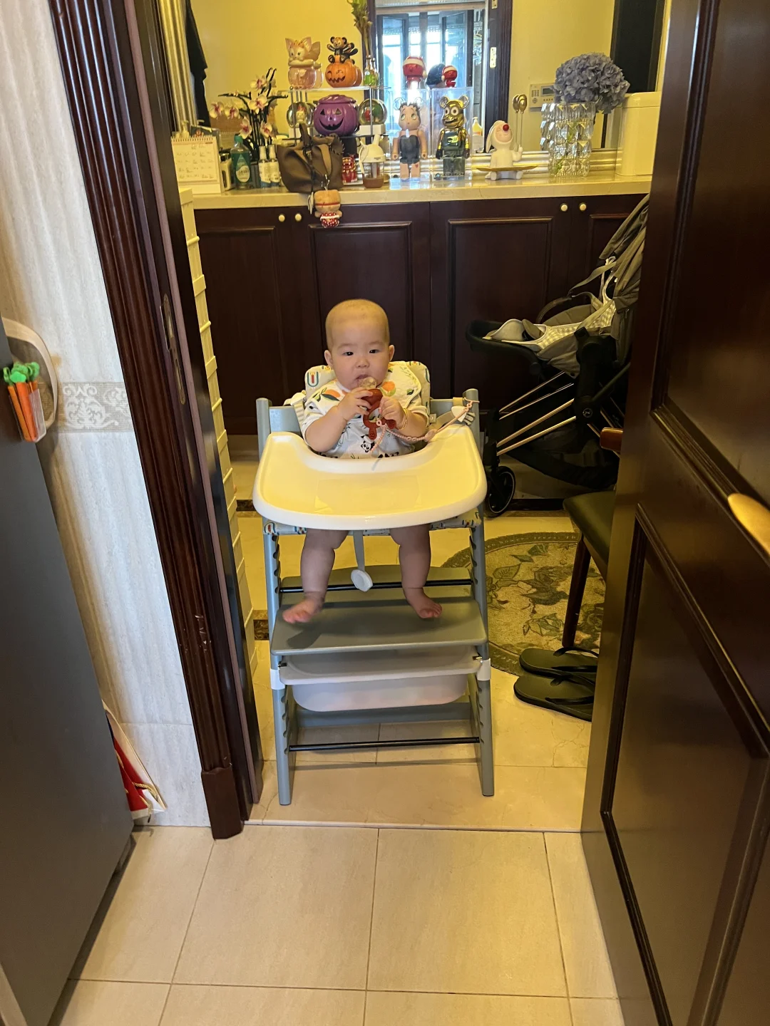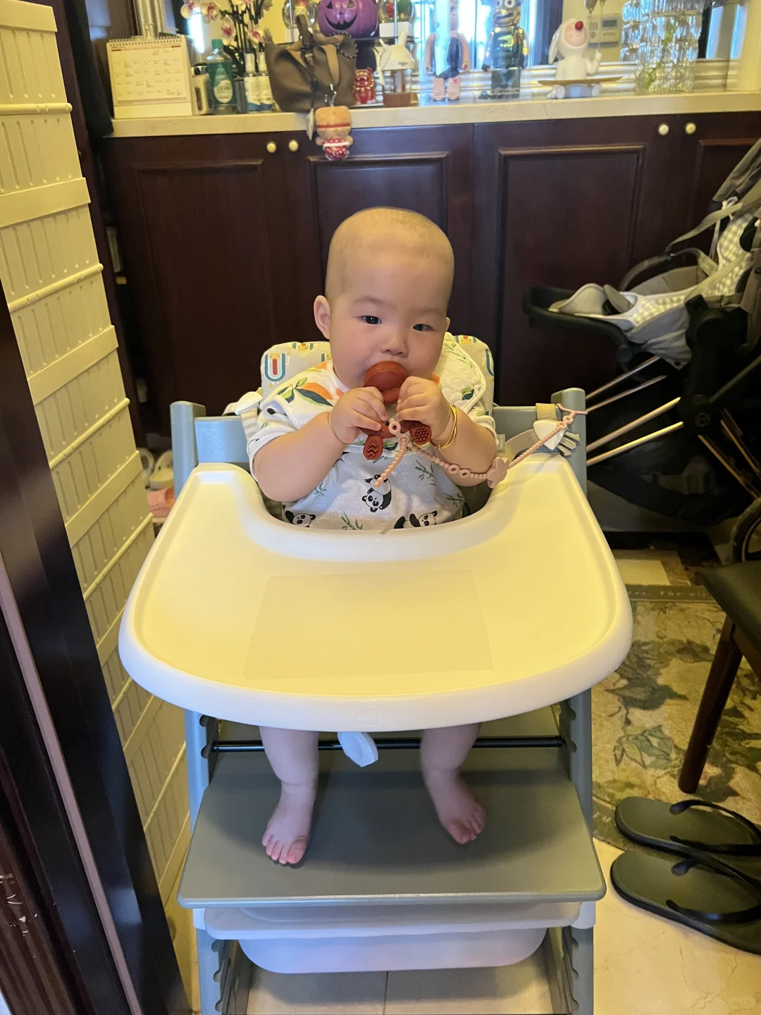 刚刚给女鹅剃了胎发,收获夏日小卤蛋一枚~ 7月龄越来越粘人,很难脱手,想在厨房做一个紫苏桃子姜,她就在客厅嚎。灵机一动,把她放在餐椅上移到厨房门口,在咬咬乐里塞了时令的水蜜桃,总算安静下来。 老母亲可以专心研究黑暗料理了。