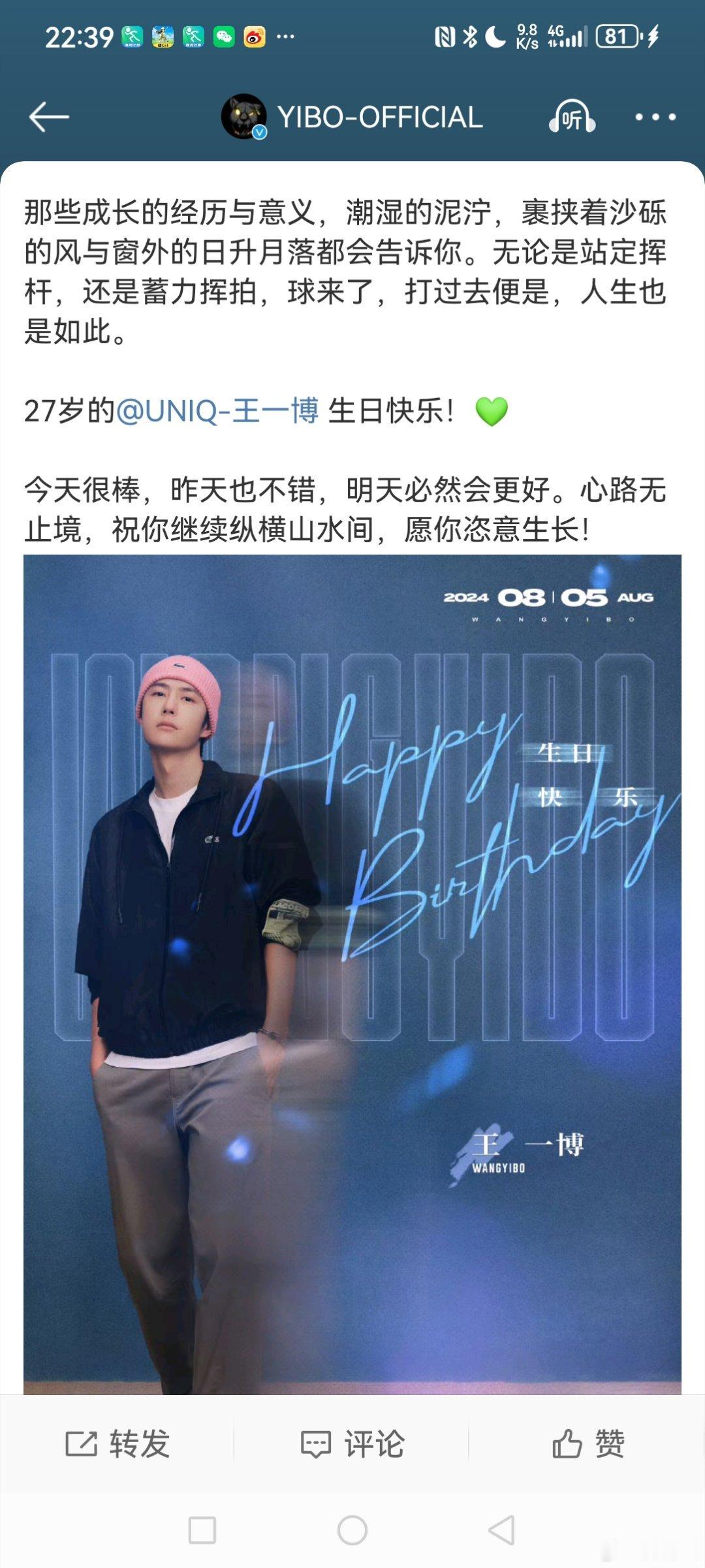 王一博演出前在后台接受记者采访时,祝新浪微博十五周年生日快乐,祝乐华娱乐十五周年生日快乐!