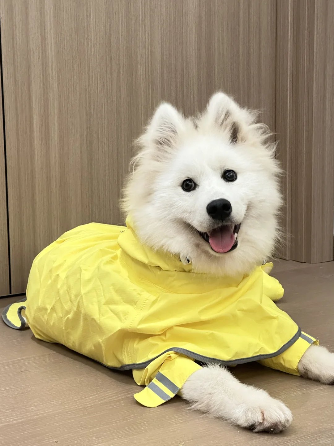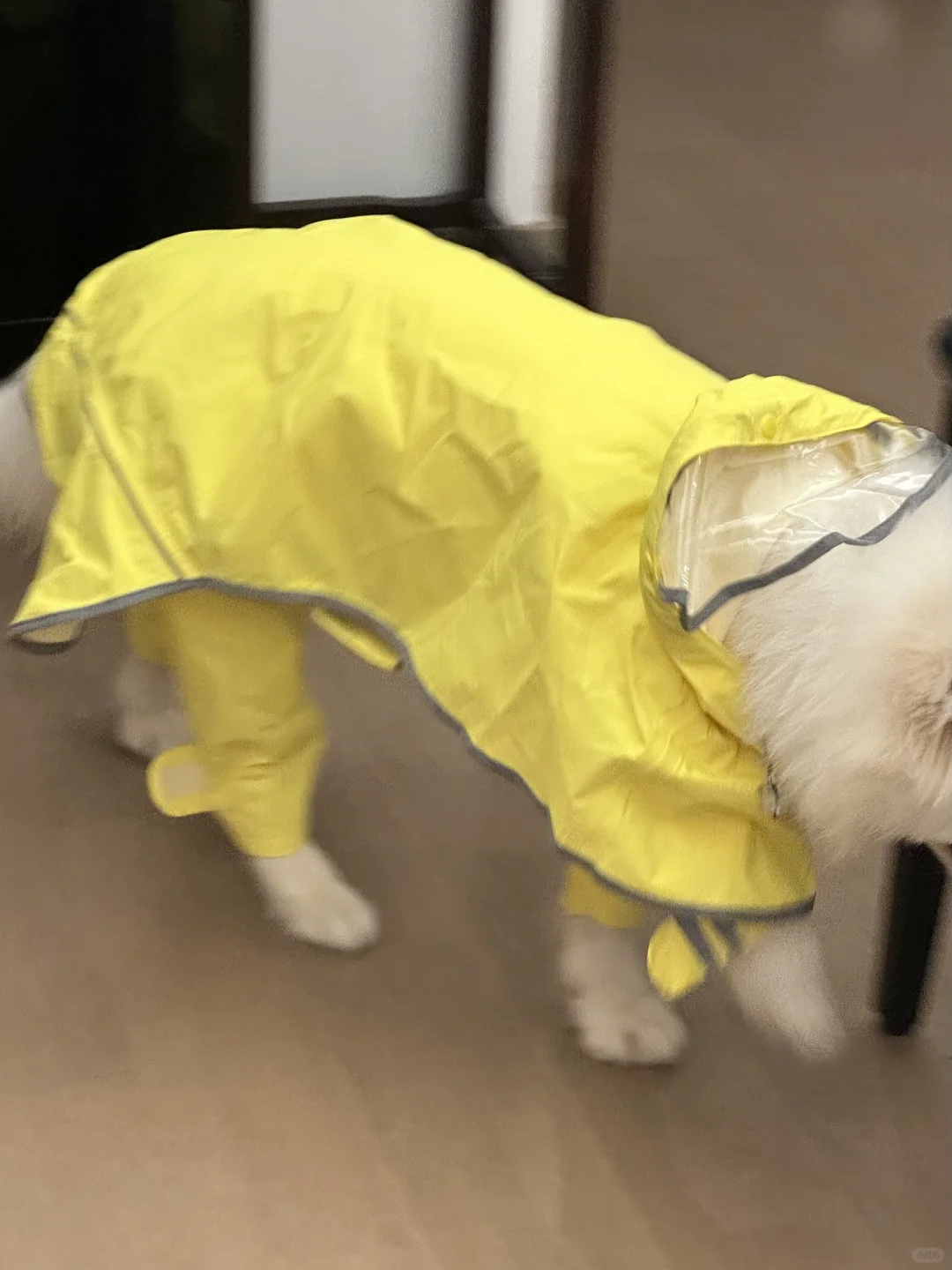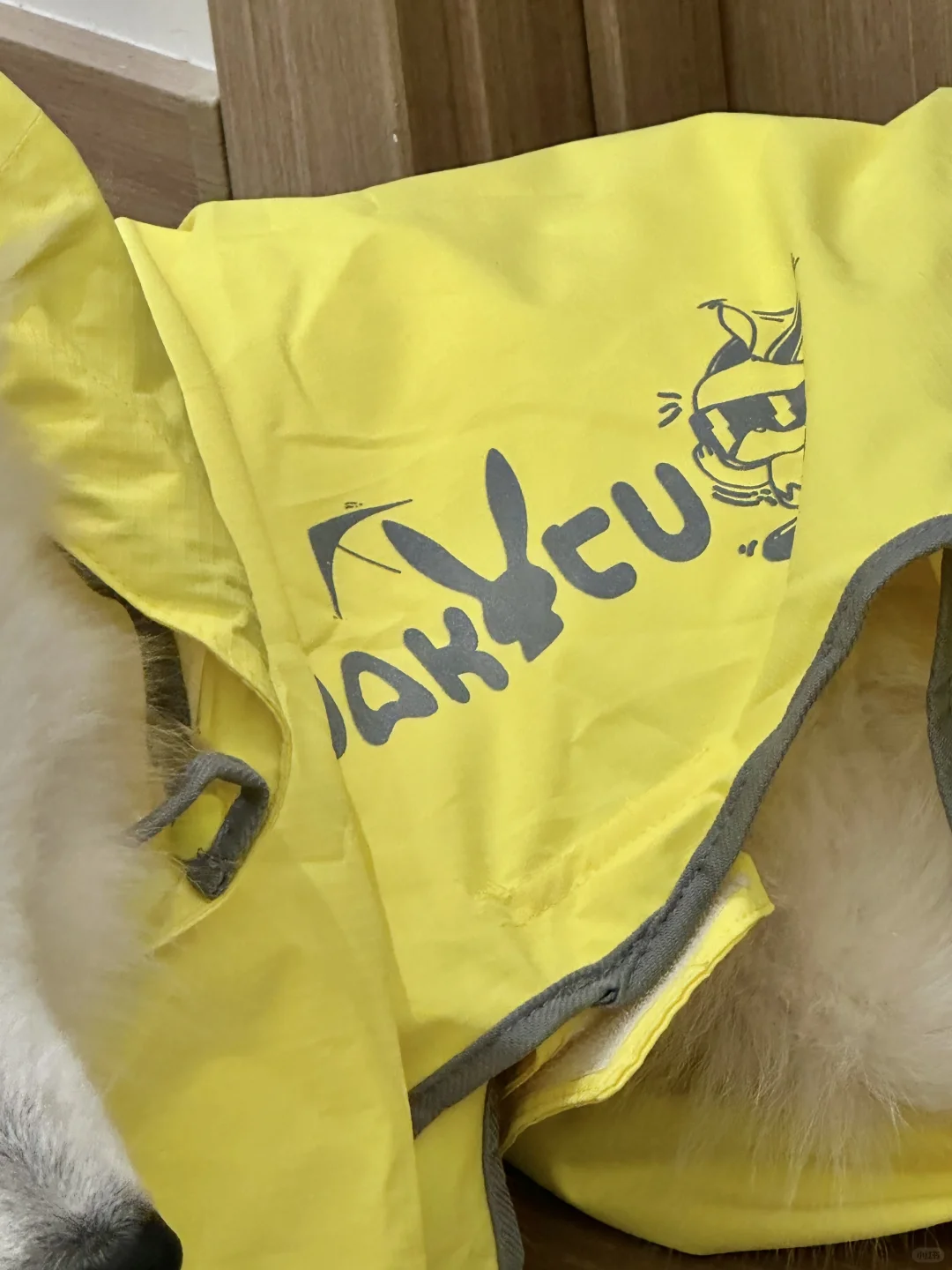 是在家里整装待发准备出门送外卖的麦旋风宝宝 今天要接哪位小主的单呢~ wakytu的雨衣太亮眼了🥹 本来是梅雨季就准备好的结果尺码太大了 今天终于穿上了!! 报告ee们小麦现在22.4斤了~有在好好长大哦