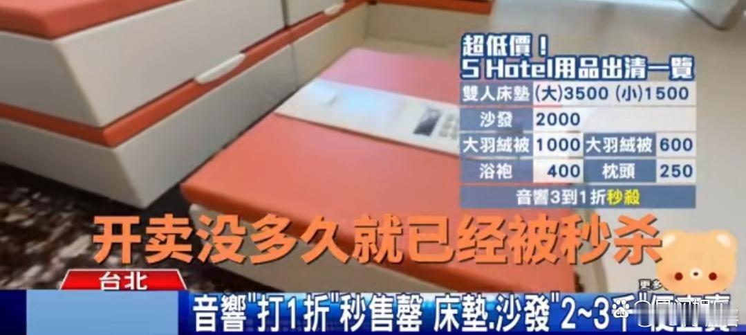 与离婚后,台北酒店🏨S Hotel更名为“美憬阁”,但持续亏损严重,近日宣布倒闭,酒店🏨用品全部低价甩卖,引发台北市民排长队抢购。