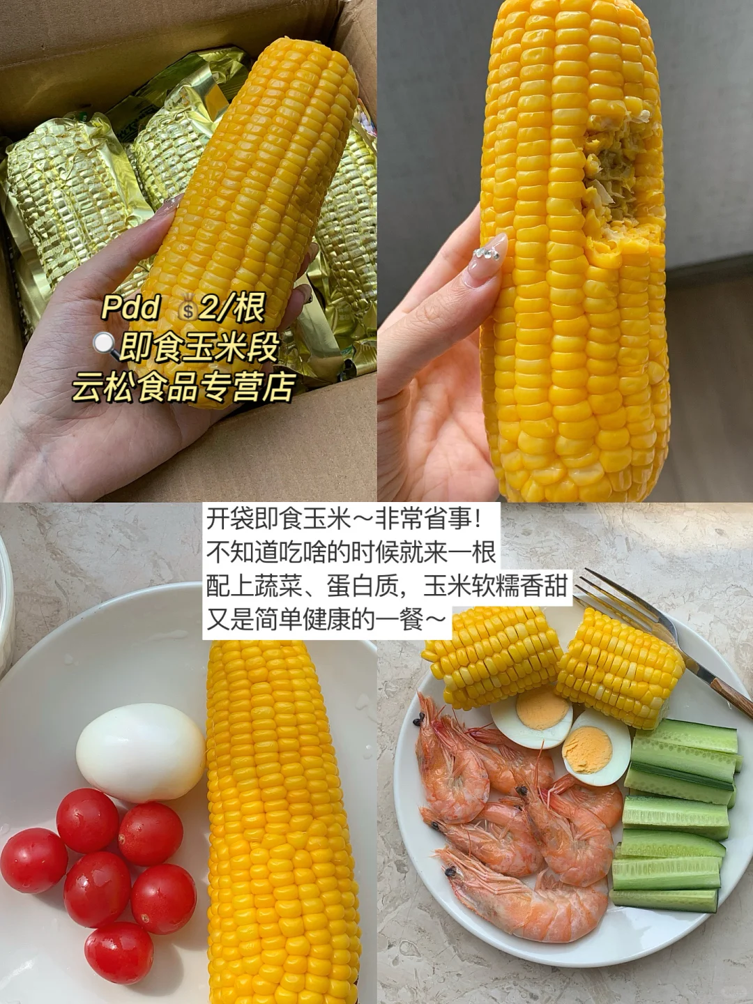 玉米软糯香甜,配上蔬菜🥬、蛋白质🥩,又是健康和方便快捷的一餐~