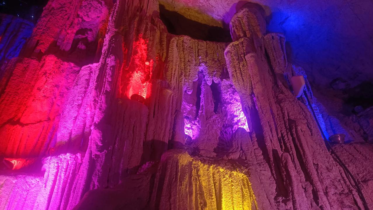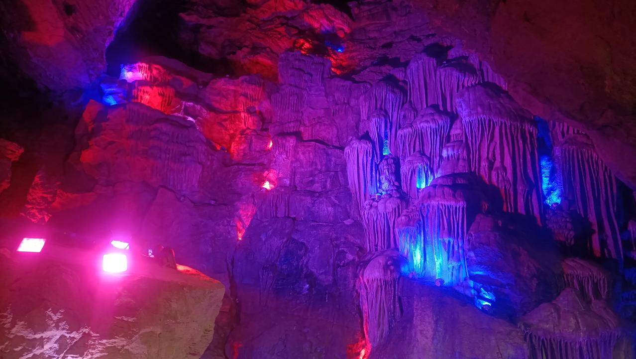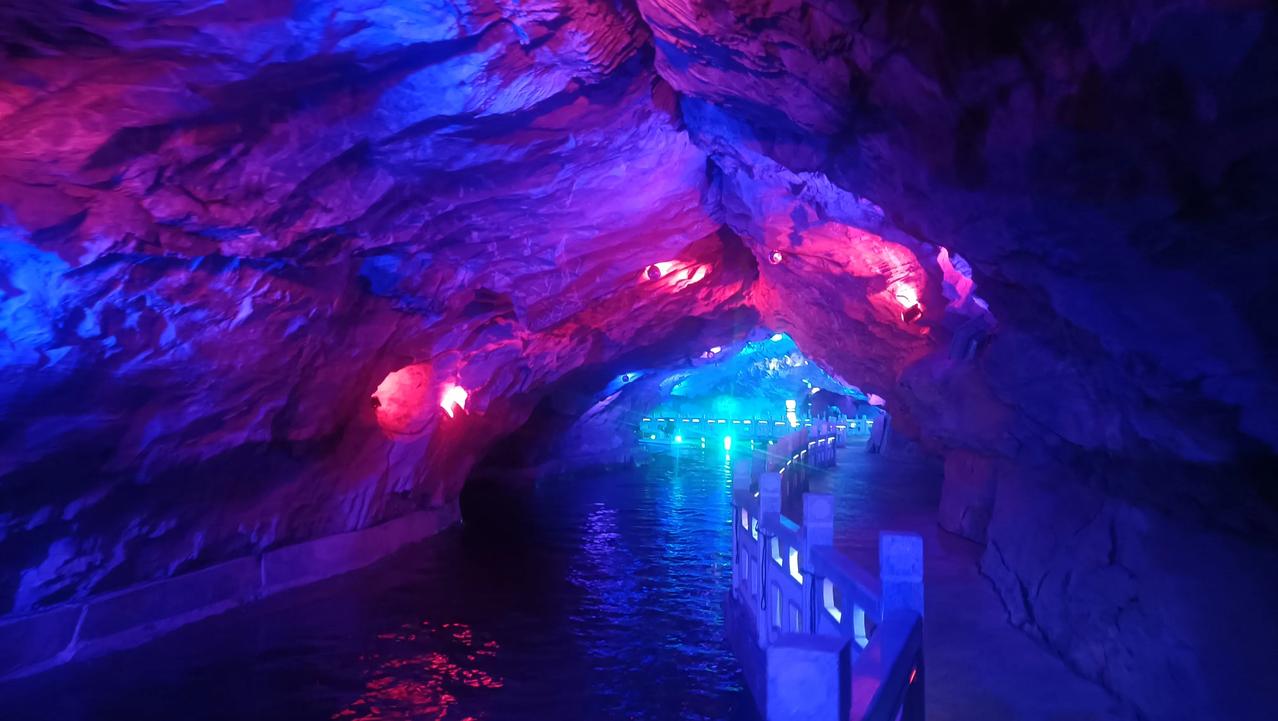 丹东赛马天锅古洞景区位于辽宁省凤城市赛马镇温洞村,属喀斯特地貌岩溶洞穴景观,景区由魁伟洞穴、澄碧镜湖、云中玻璃栈道等奇景组成。洞穴含水洞(水月洞天世界)和旱洞(青云紫薇仙宫),融山水洞、泉湖于一体。洞内深邃奇趣透迤,地下暗河千余米,洞天世界,大自然的鬼斧神工使钟乳奇石变幻万端。灯光照耀散发出朦胧迷离的色彩,使洞内显得神秘富有诗意。