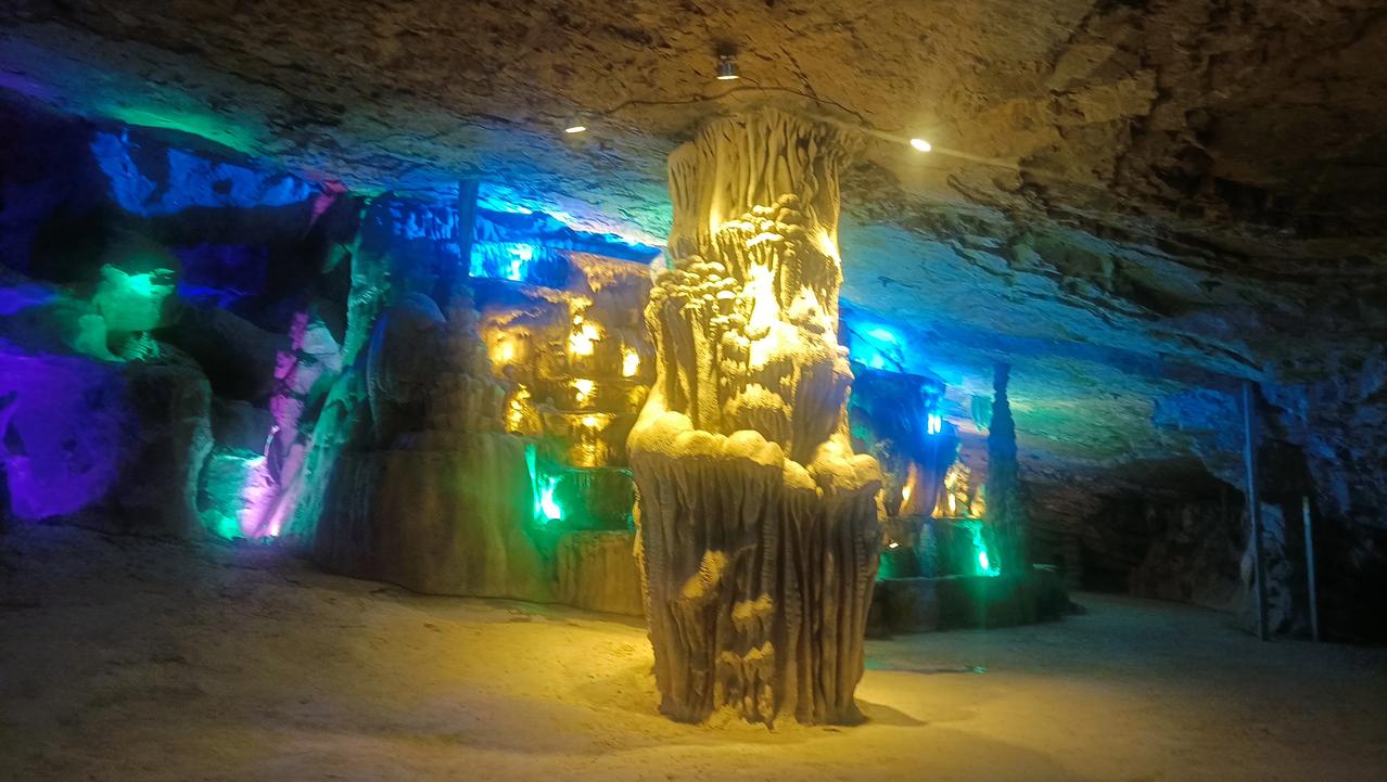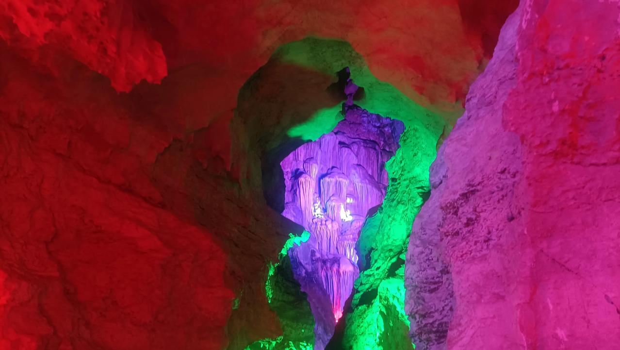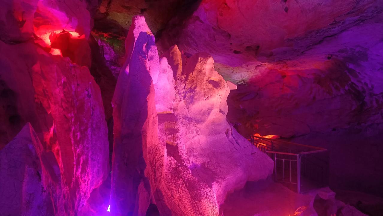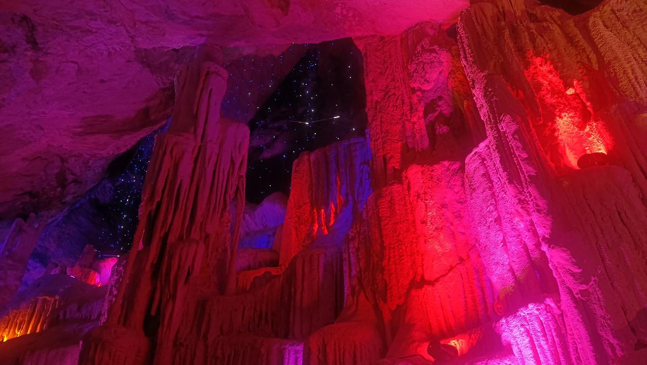 丹东赛马天锅古洞景区位于辽宁省凤城市赛马镇温洞村,属喀斯特地貌岩溶洞穴景观,景区由魁伟洞穴、澄碧镜湖、云中玻璃栈道等奇景组成。洞穴含水洞(水月洞天世界)和旱洞(青云紫薇仙宫),融山水洞、泉湖于一体。洞内深邃奇趣透迤,地下暗河千余米,洞天世界,大自然的鬼斧神工使钟乳奇石变幻万端。灯光照耀散发出朦胧迷离的色彩,使洞内显得神秘富有诗意。