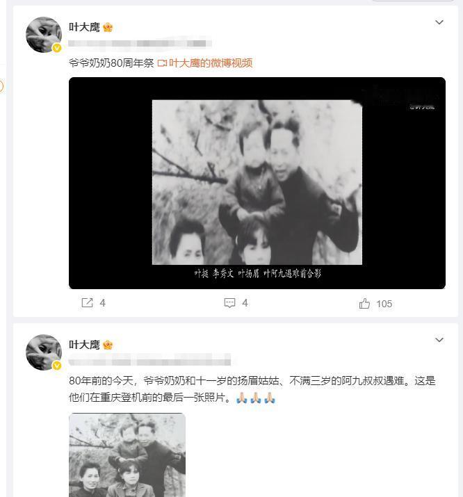 或许是上了年纪的缘故,叶先生很少出现在大众视野里,但就在前几天的时候,他突然在社交平台上发了两条怀念家里人的内容。