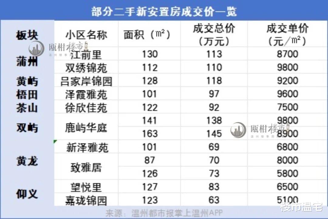 据温州都市报掌上温州APP发布的二手房成交信息,近3个月以来,市区核心外围地段,接连出现新建安置房成交价跌破10000元/㎡的案例。