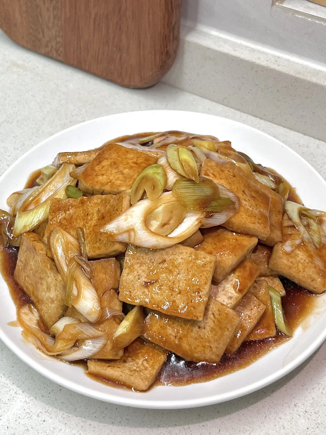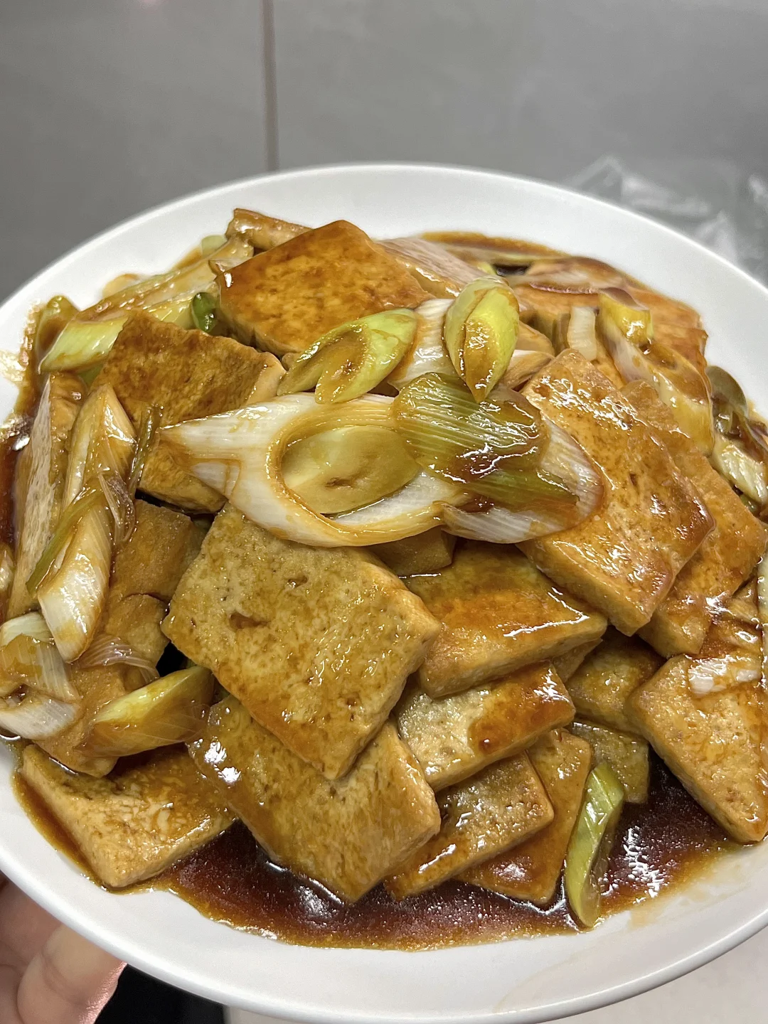 这葱烧豆腐看着太诱人了,每一块都像金砖浸着酱香!拌饭我能吃三大碗,幸福感爆棚~你也来试试?